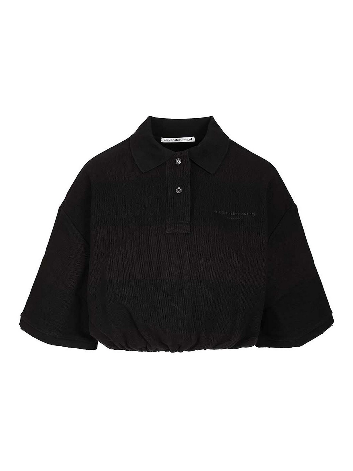Deconstructed polo shirt in heavy piqu by alexander wang with adjustable drawstring at the bottom and embroidered logo on the chest