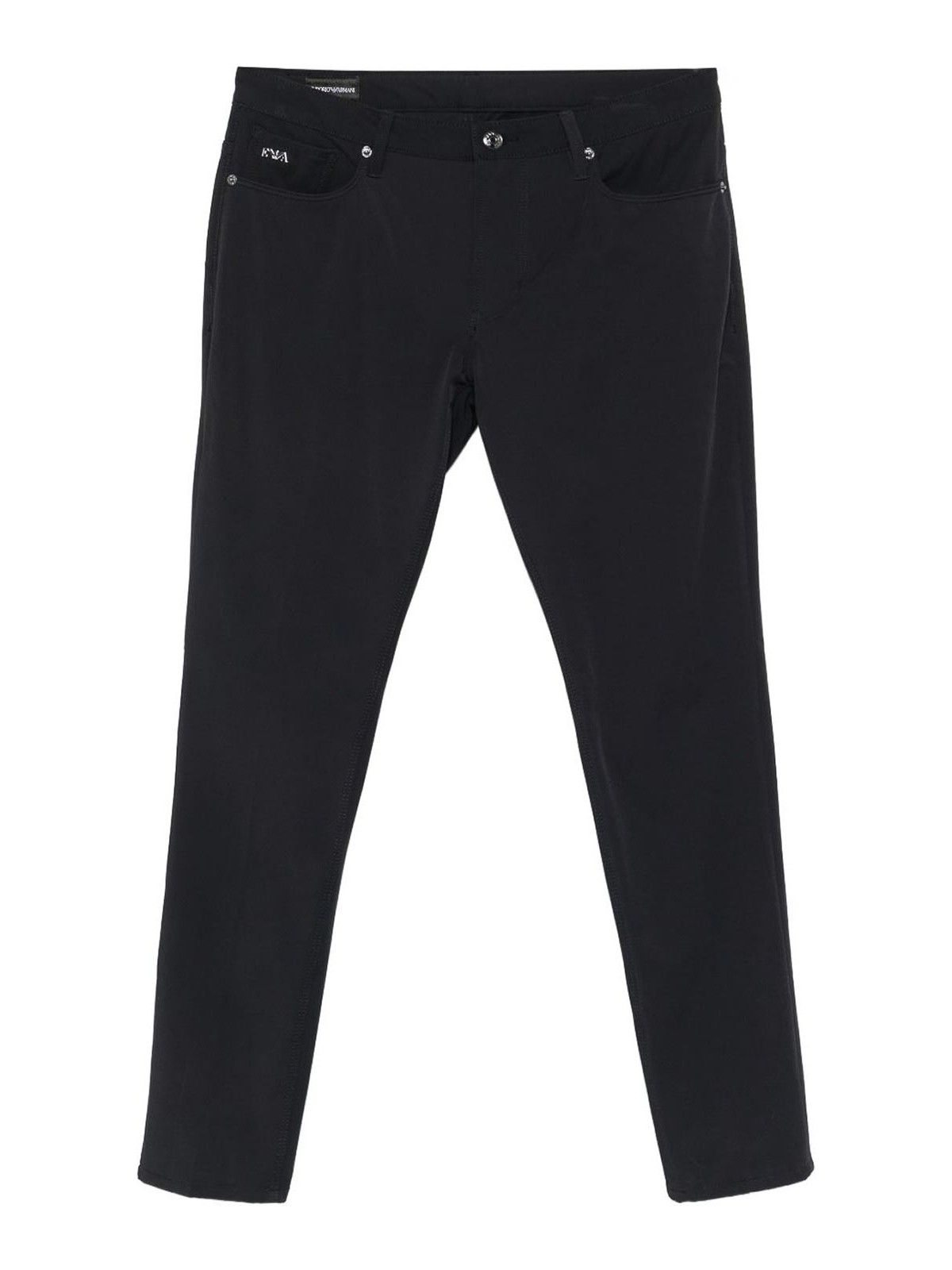 Black logo detail five-pocket styling zip fly button fastening straight leg