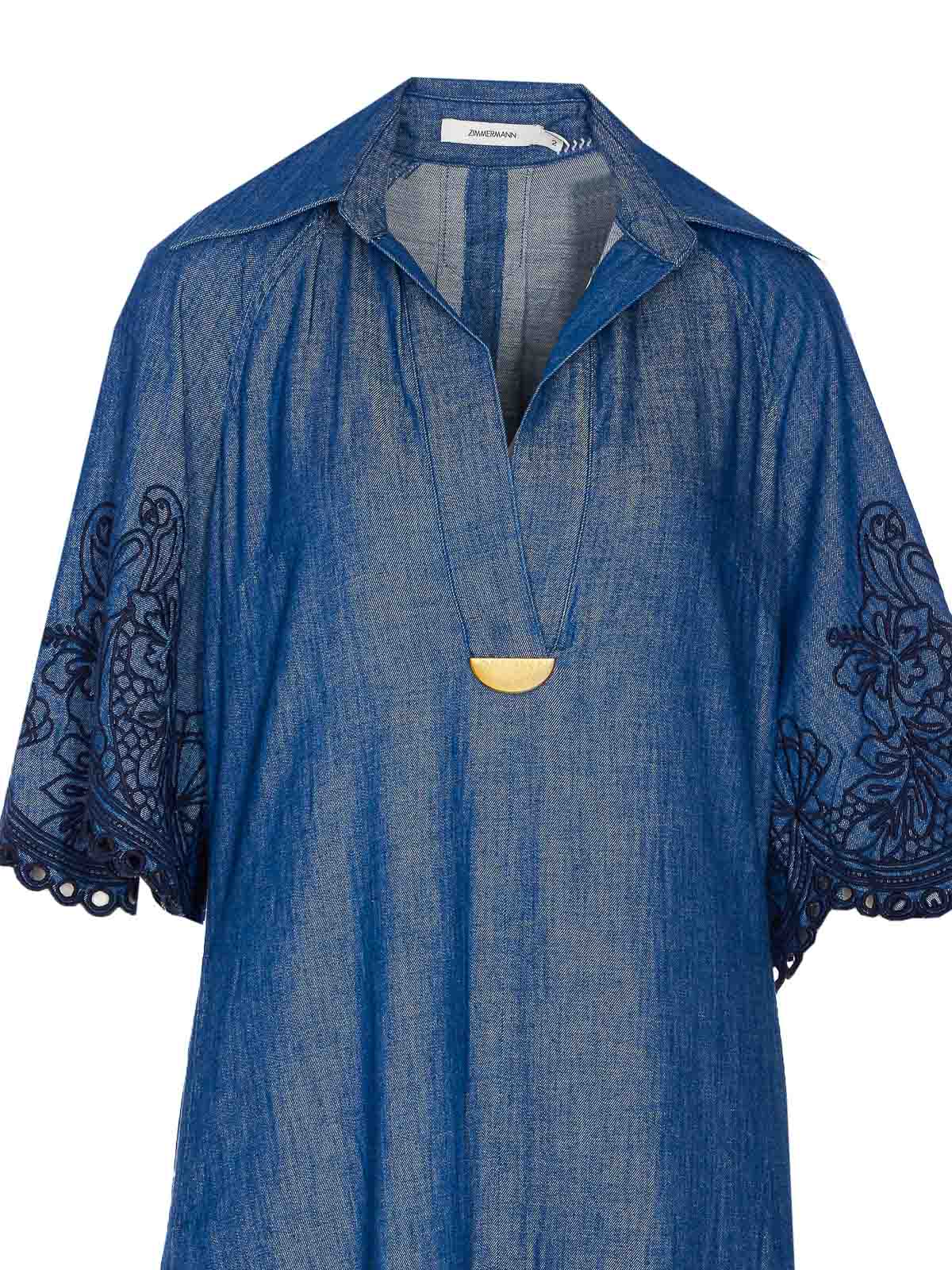 ZIMMERMANN: knee length dresses - Denim Embroidered Dress