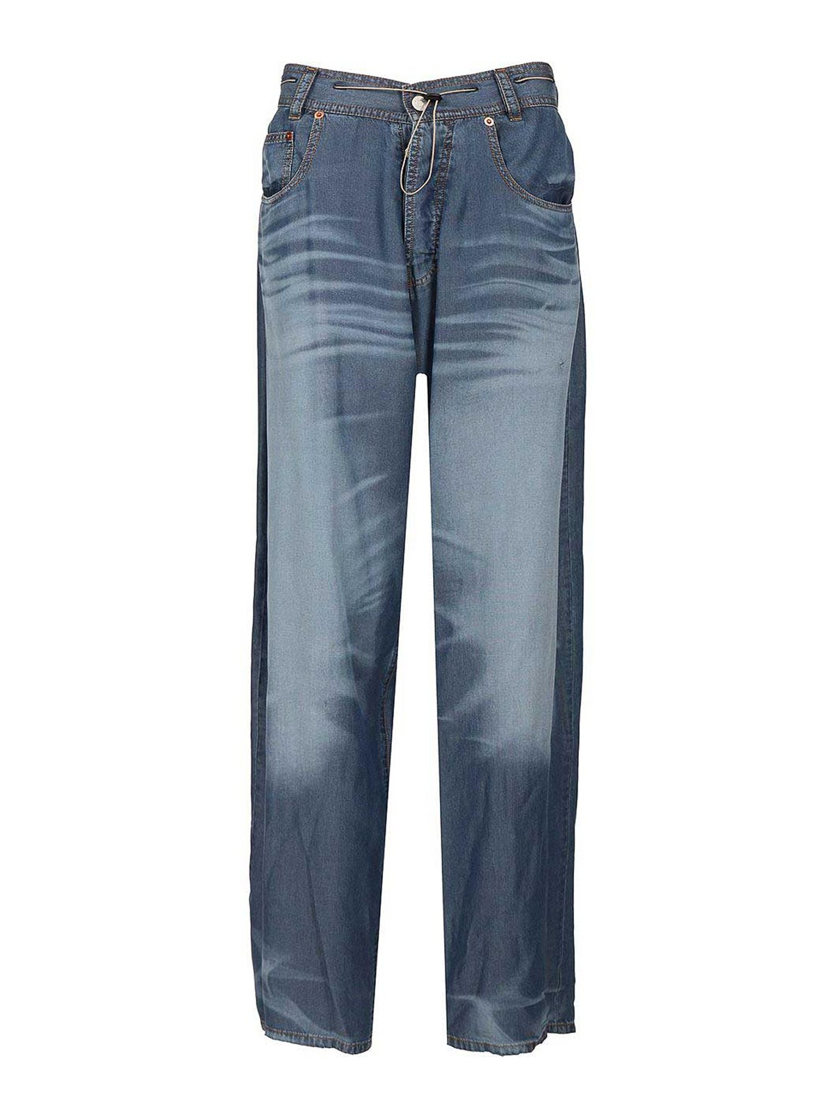 Super-lightweight trompe-l'oeil denim trousers by magliano. oversized fit.