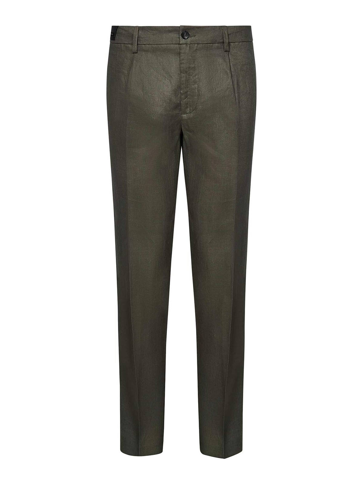 MICHAEL COAL: casual trousers - Denny Military Green Linen Trousers
