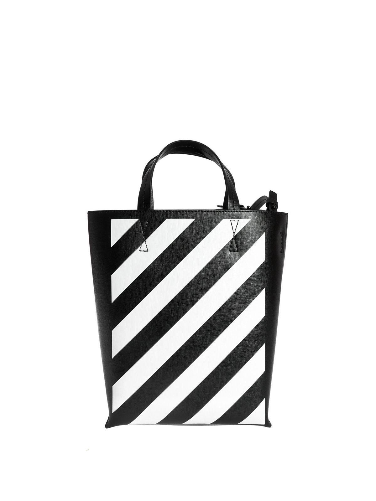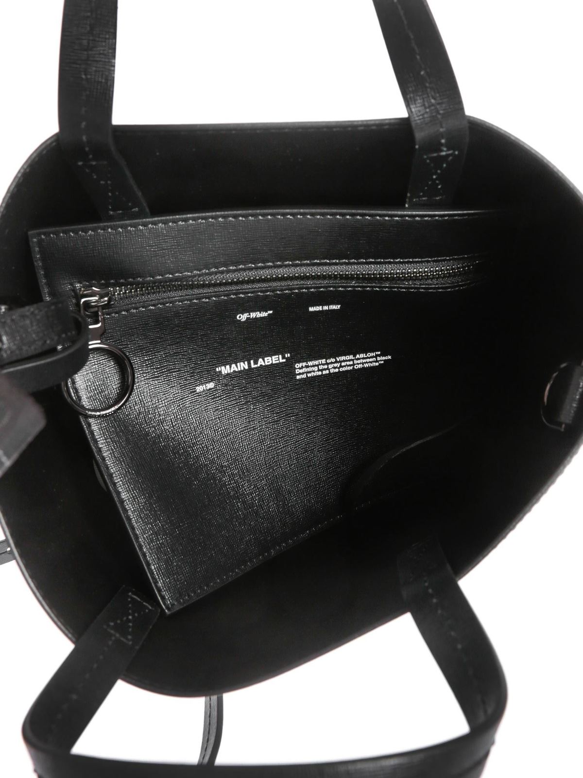 Leather bag featuring upper handles, adjustable and removable shoulder strap and removable inner zipped pouch.