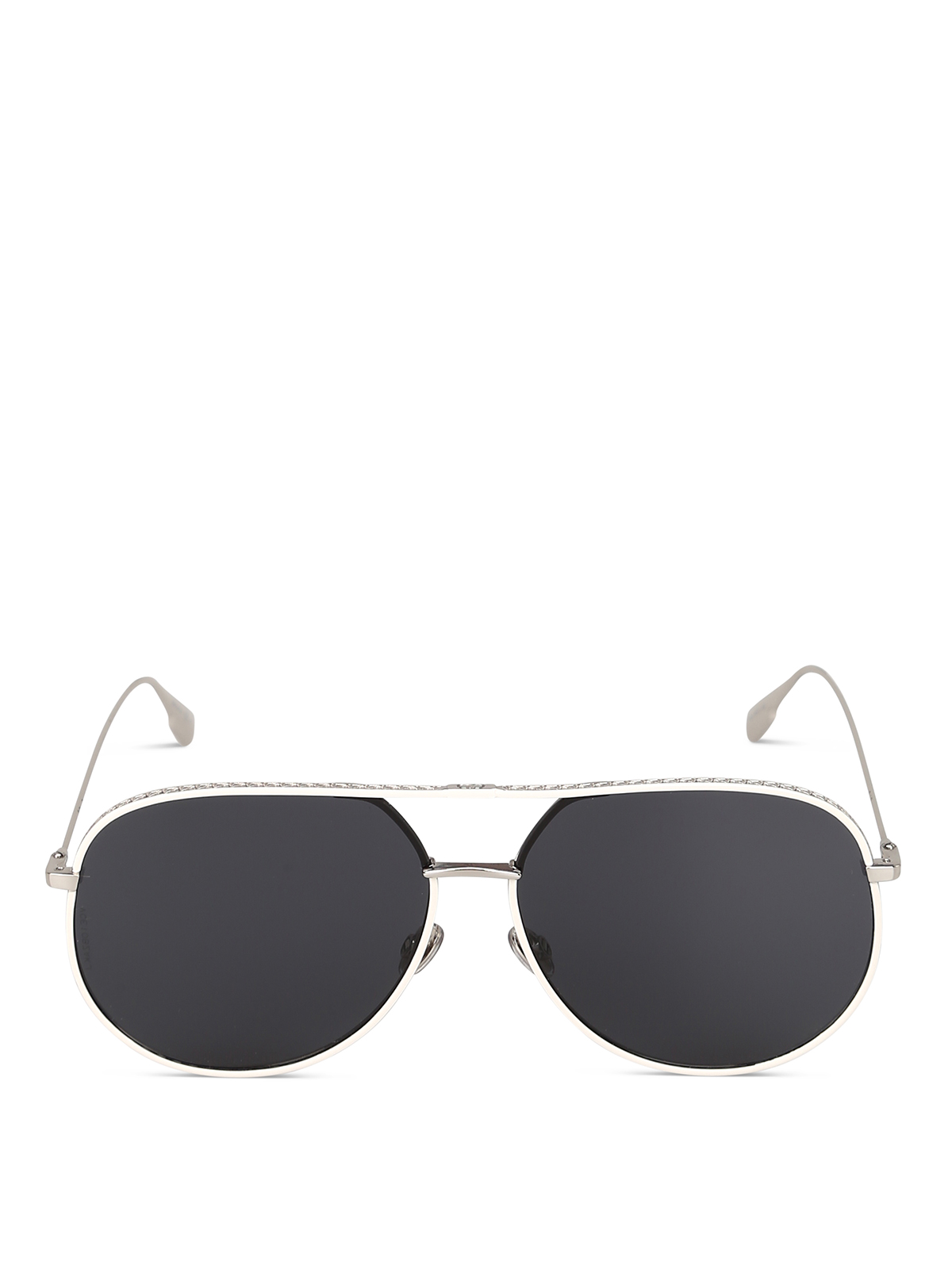 Textured white and silver metal aviator sunglasses featuring grey lenses.