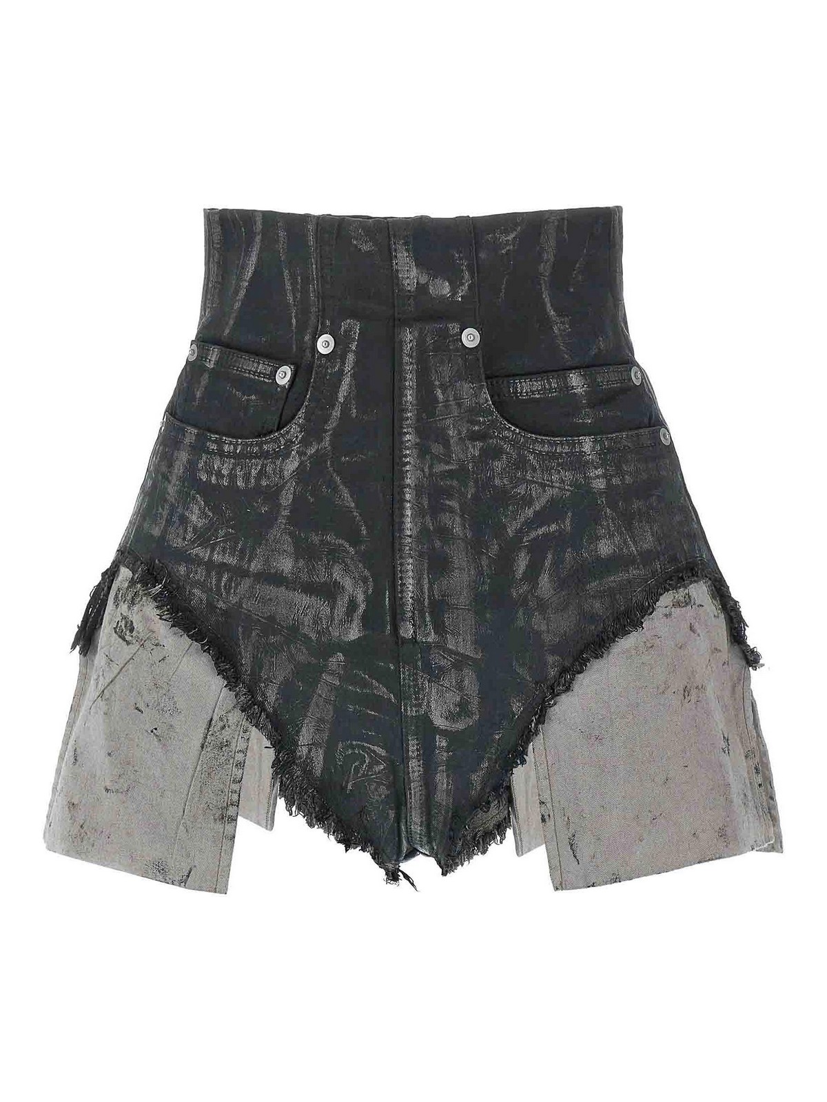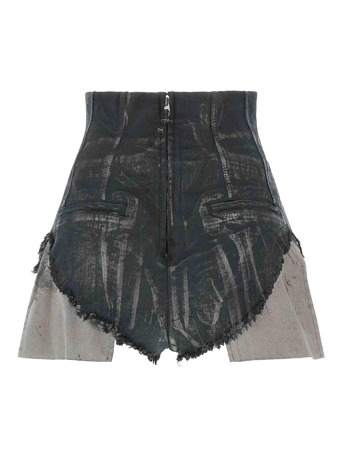 dirt cutoffs' shorts in coated effect cotton blend, back zip closure, five pockets, frayed hem, exposed pocket lining.
