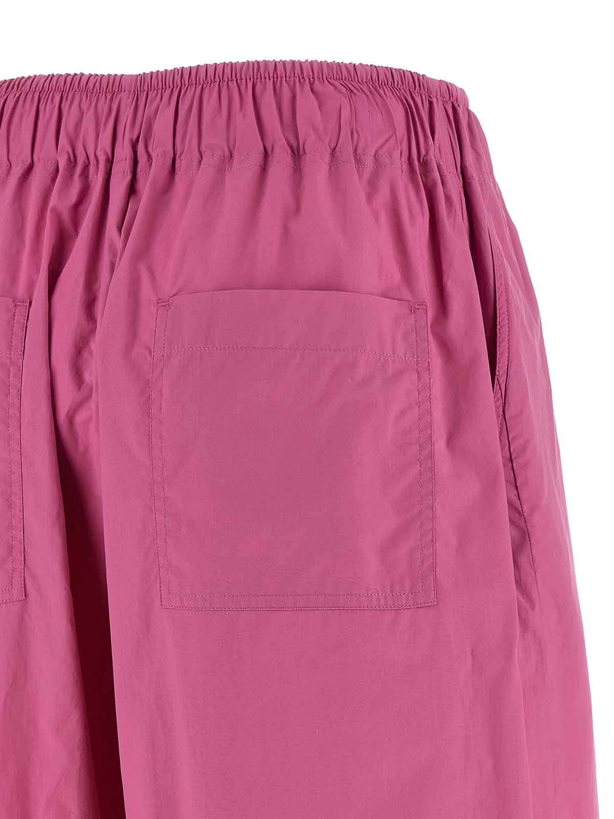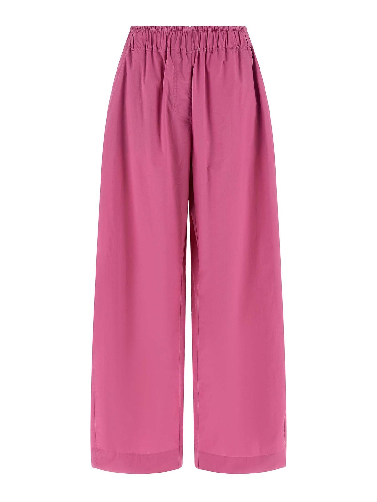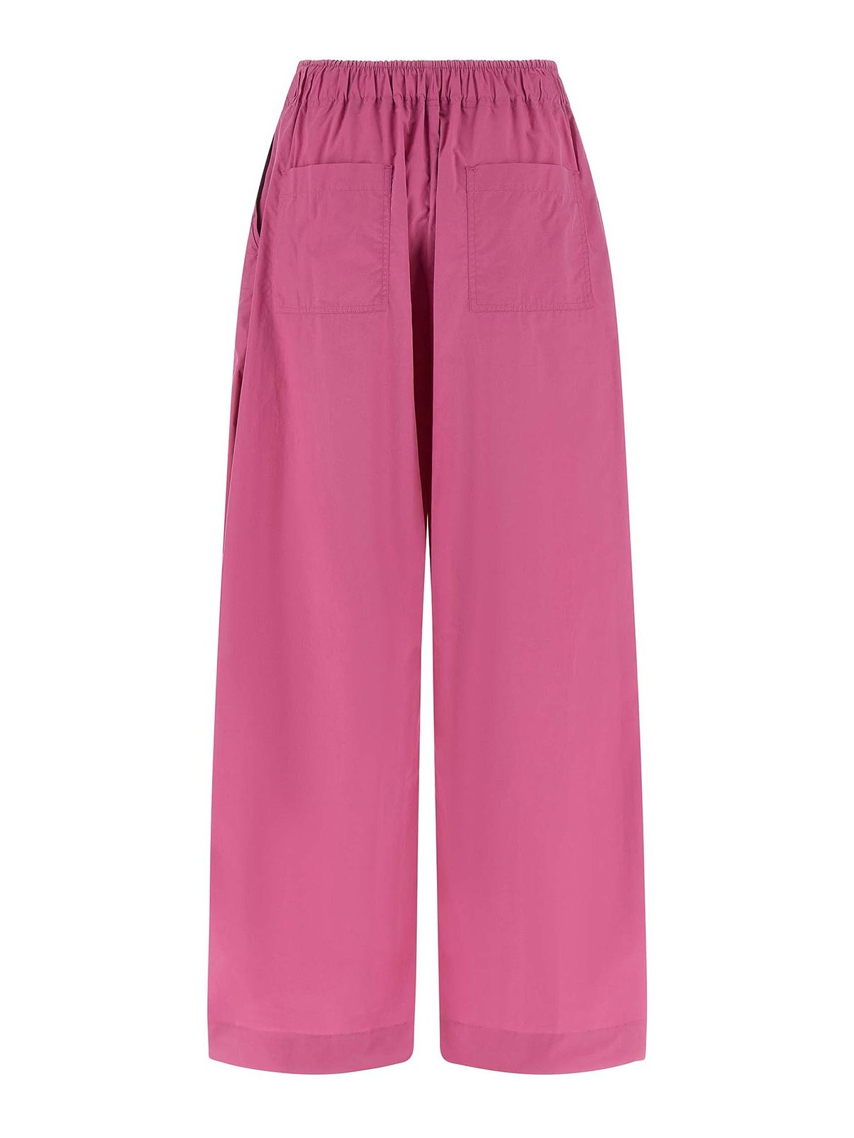 dora' cotton poplin pants, wide and straight leg, elastic waistband, trompe l'oeil flap, pockets.
