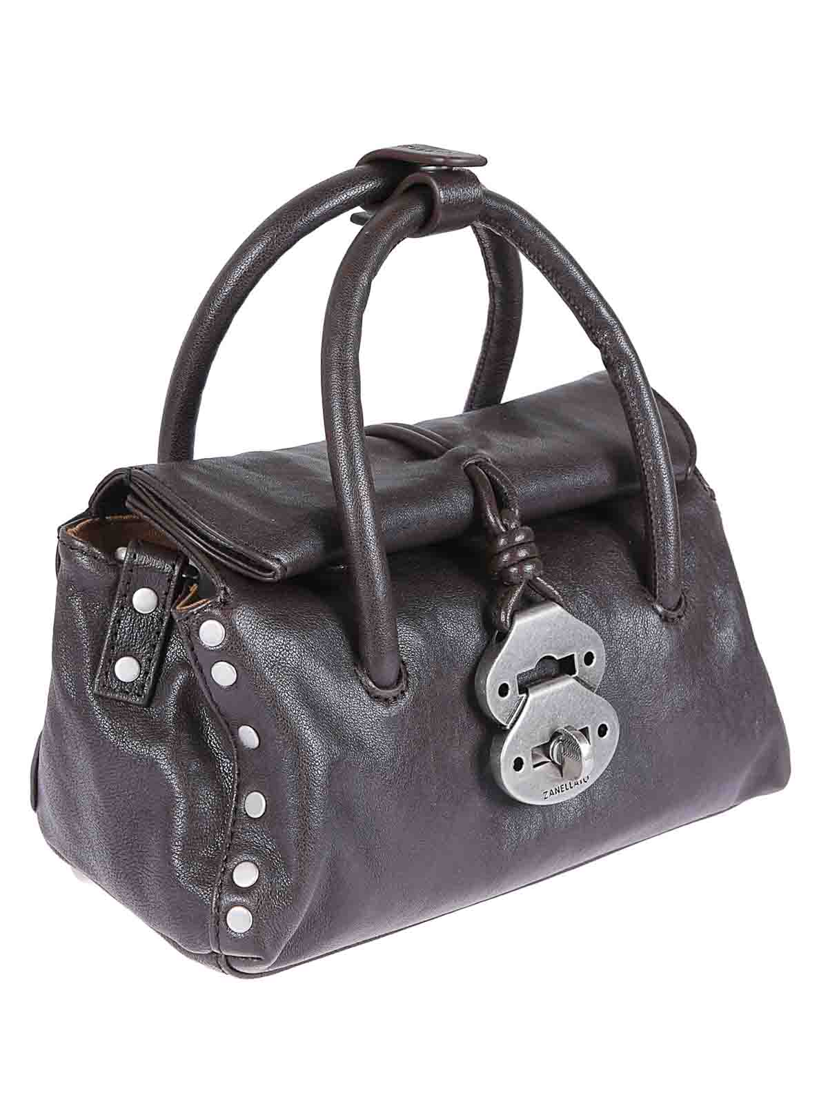 TWIST LOCK coal leather bag and double magnetic buttons adjustable and removable handle two internal compartments