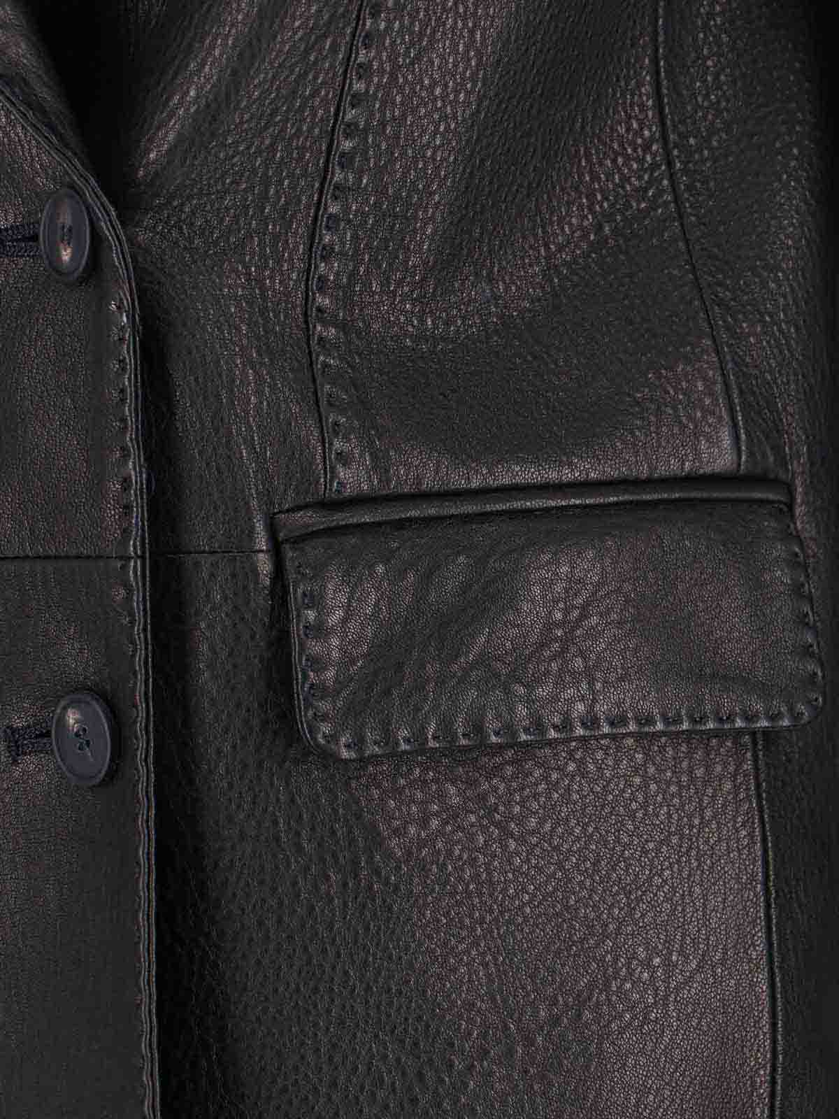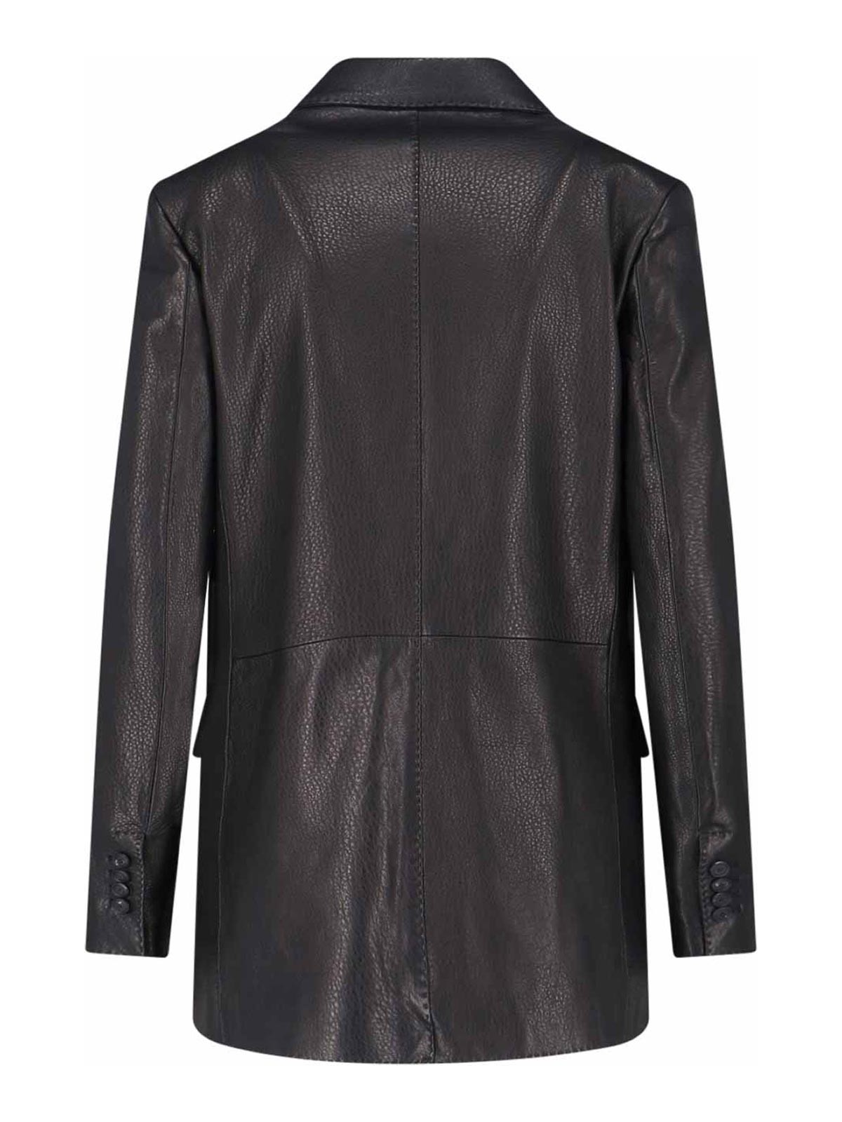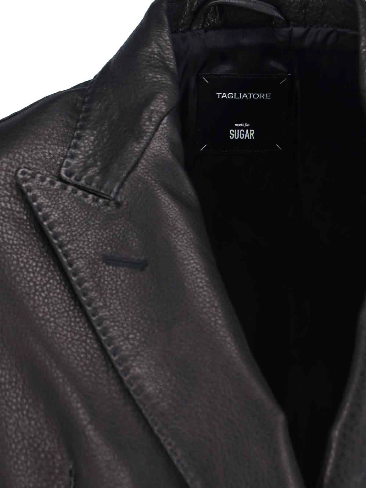 Double-breasted blazer in cutter lambskin, made exclusively for sugar, black, peak lapels, button closure, one flat front pocket, two side pockets, buttoned cuffs, straight hem.