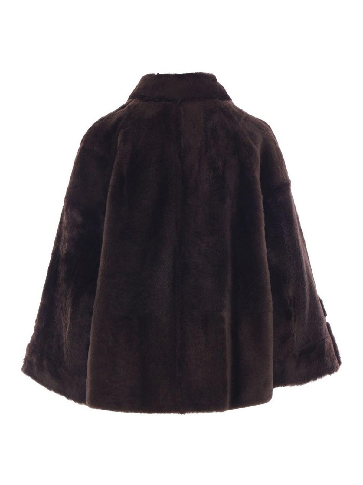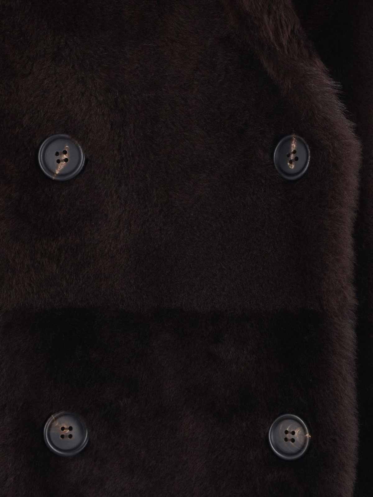 Brown Finishing in double -breasted shearling with large classic reverss applied pockets