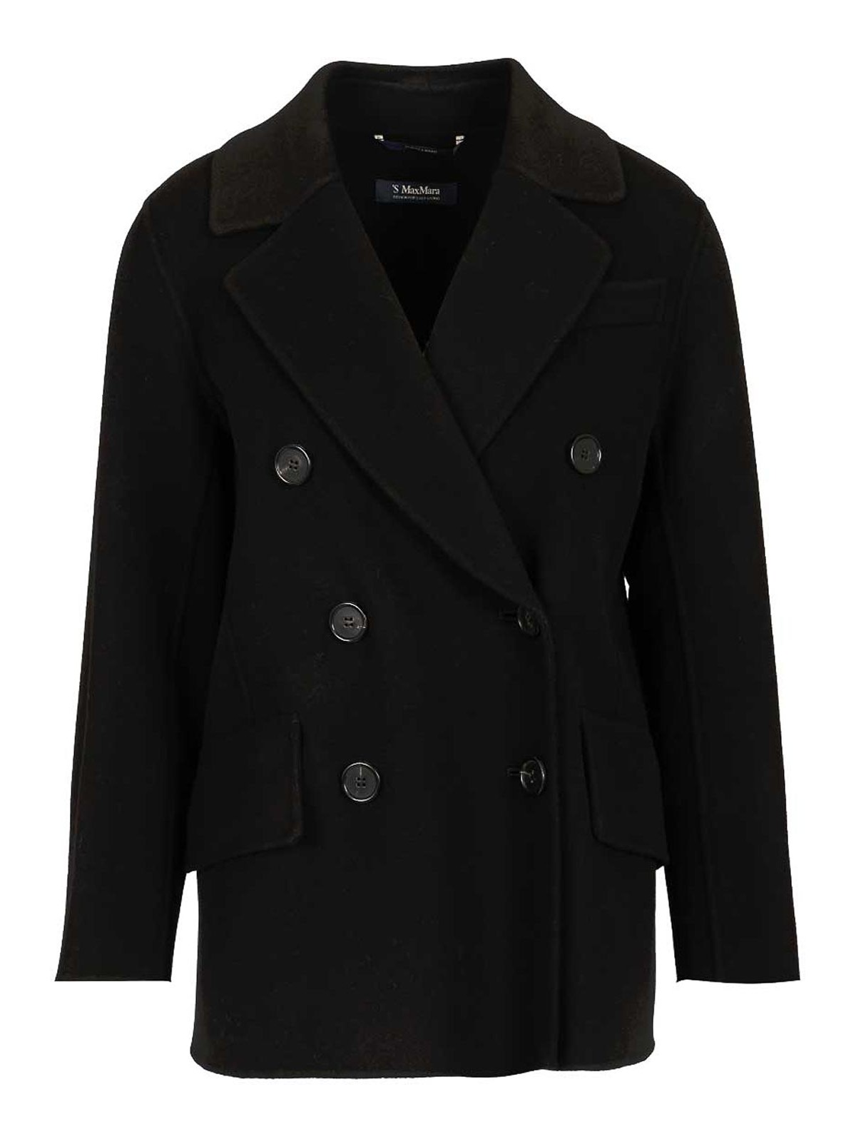 Double-breasted wool jacket by max mara 's, with lapel collar, set-in sleeves with vents and buttons on the cuffs, visible button fastening, breast pocket, welt pockets with flap on the front, central vent on the back