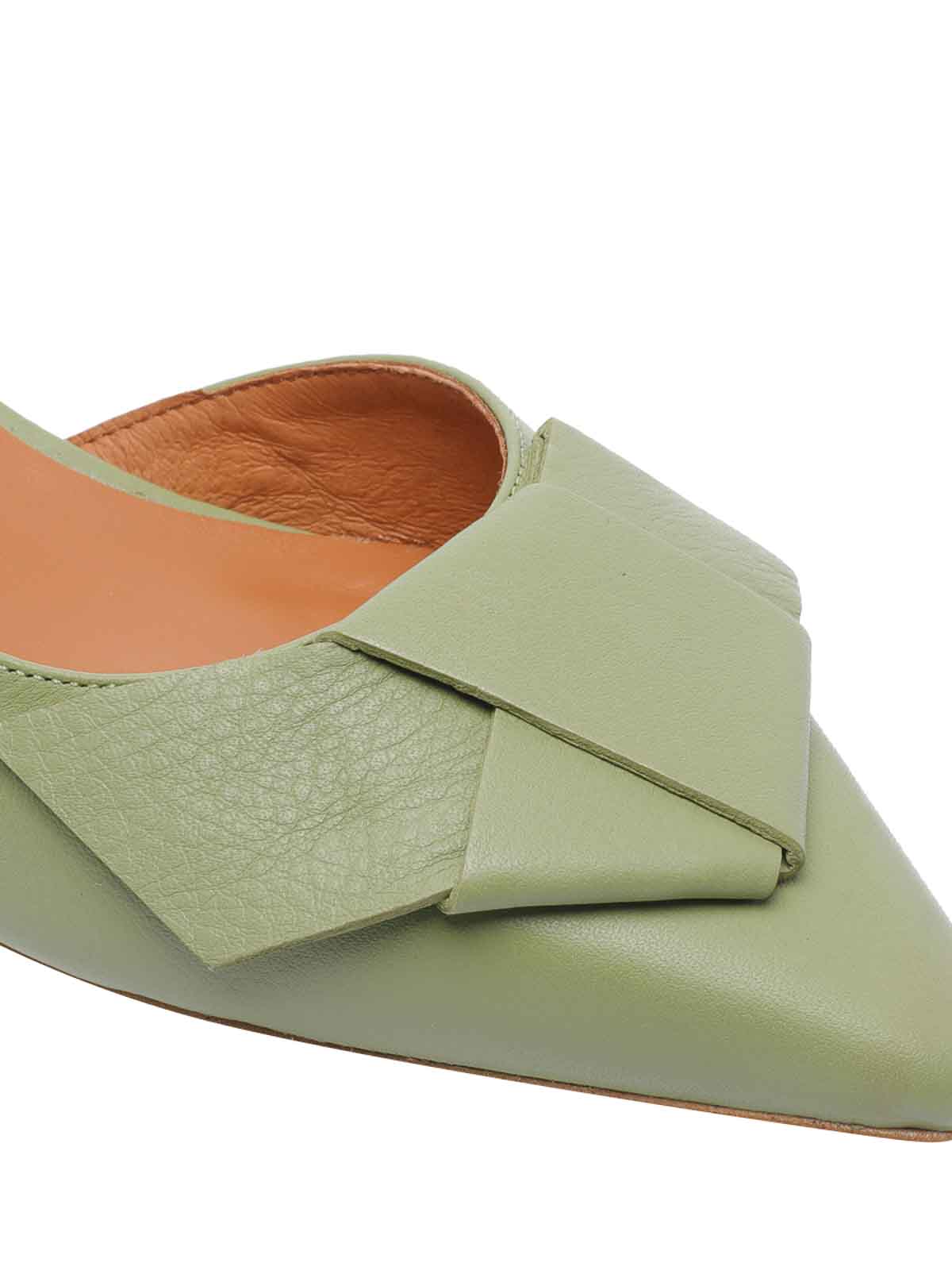 Green slingback bow open on the back