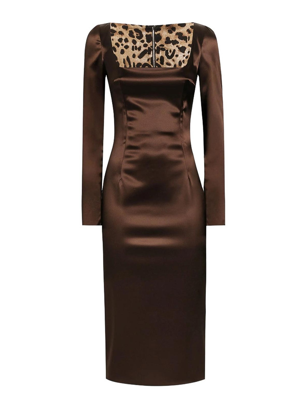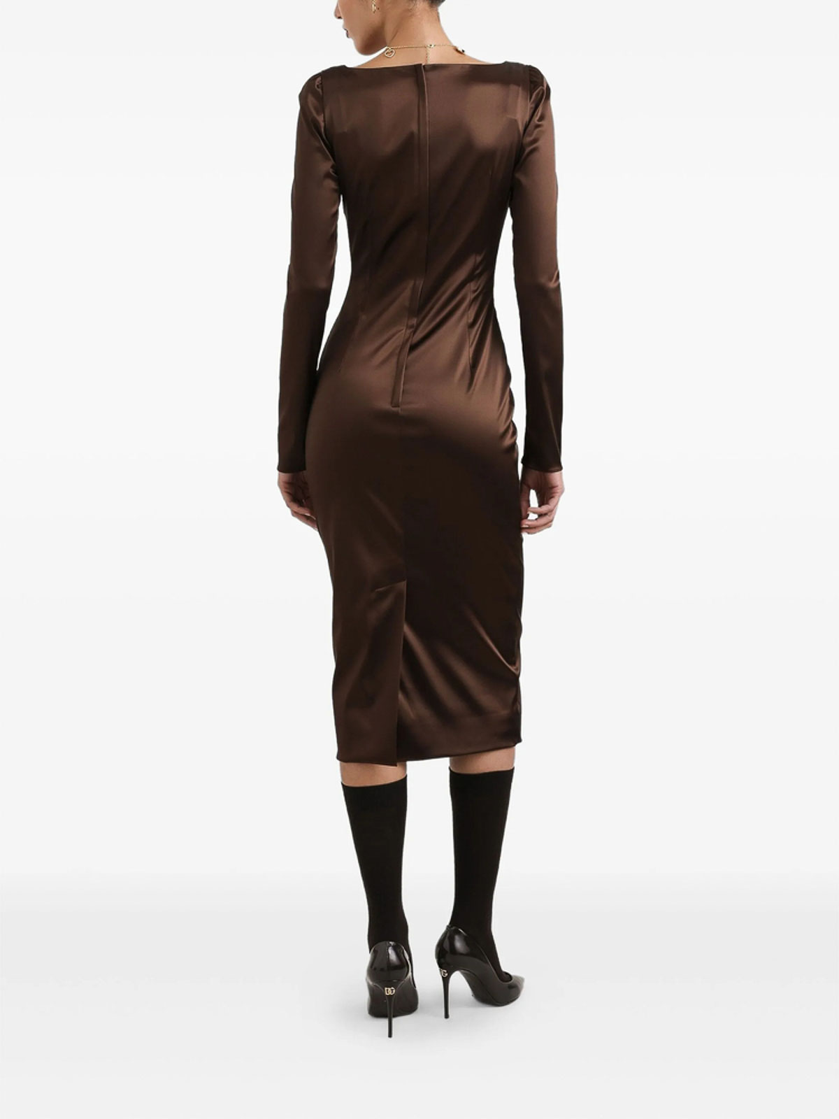 Dark brown square neckline long sleeves back slit