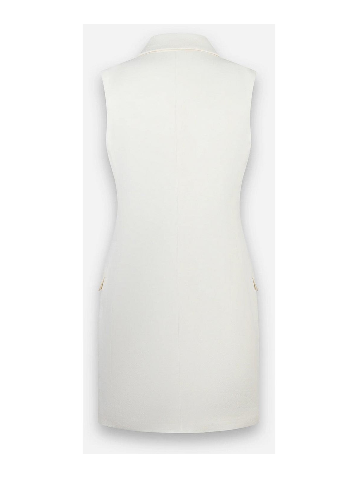 Elisabetta franchi linen-blend gabardine dress. the dress is sleeveless with double-breasted and peaked lapels. gold metal logo buttons add a precious note to its essential style. regular fit.