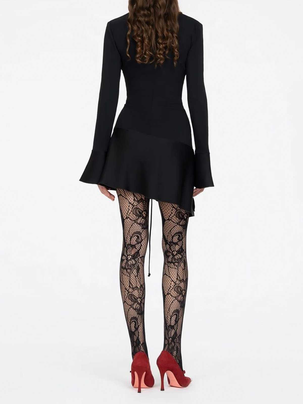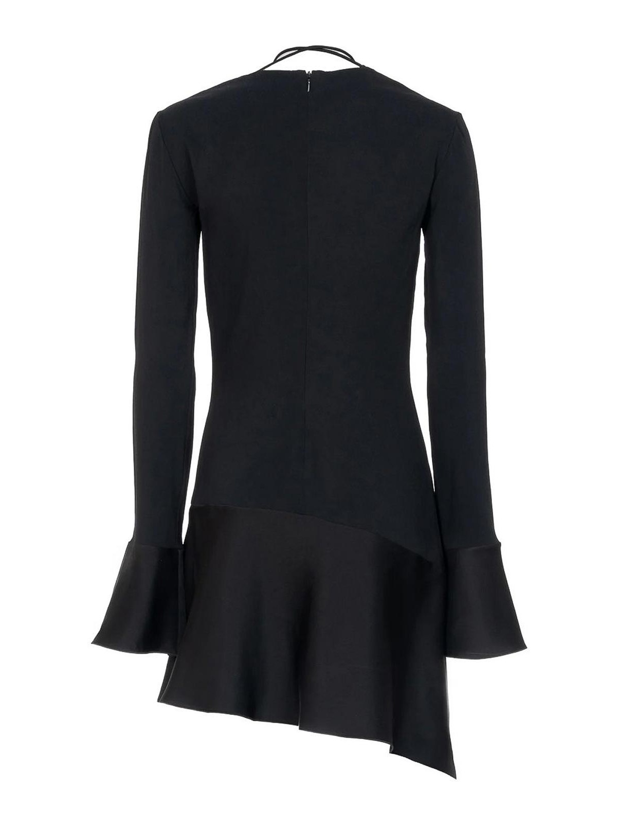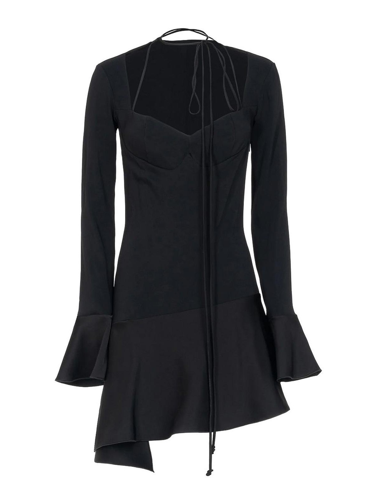 Les filles d'eva short dress in stretch fabric with a fitted silhouette. square neckline, long sleeves, tie closure at the neck and flared hem.