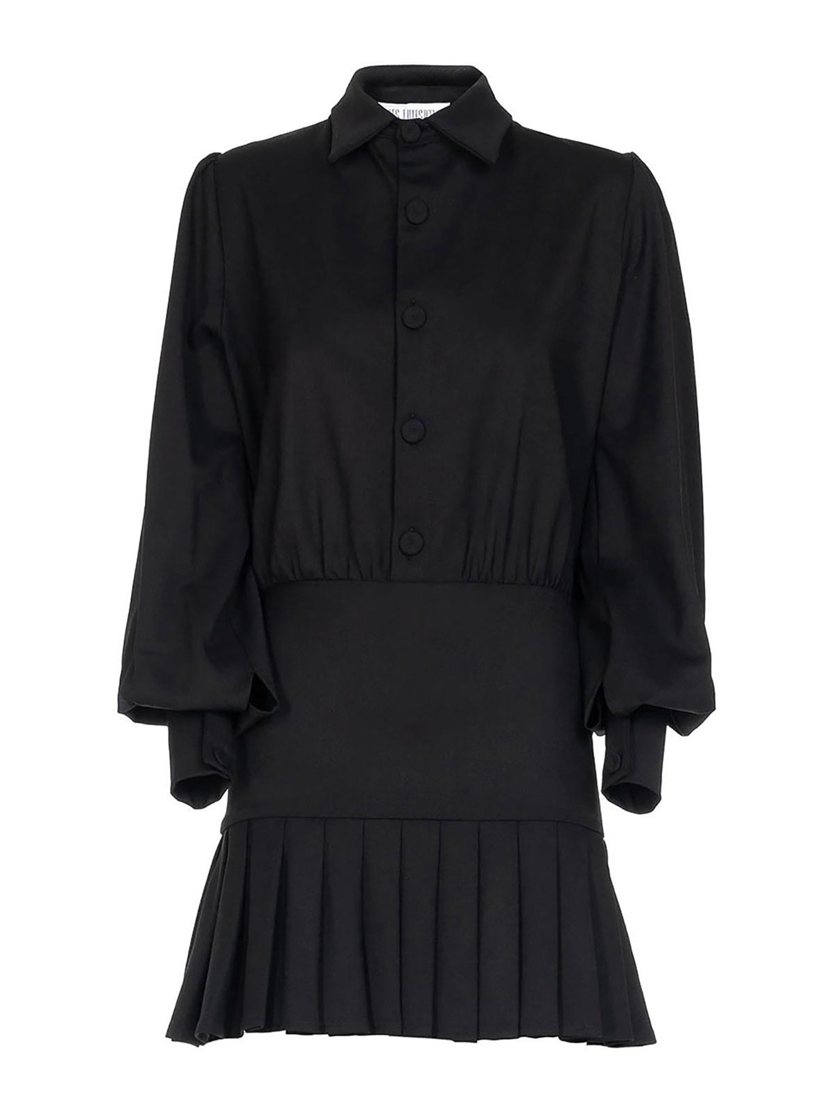 Les filles d'eva mini dress in virgin wool with shirt bodice, classic collar and long sleeves. short skirt with pleats.