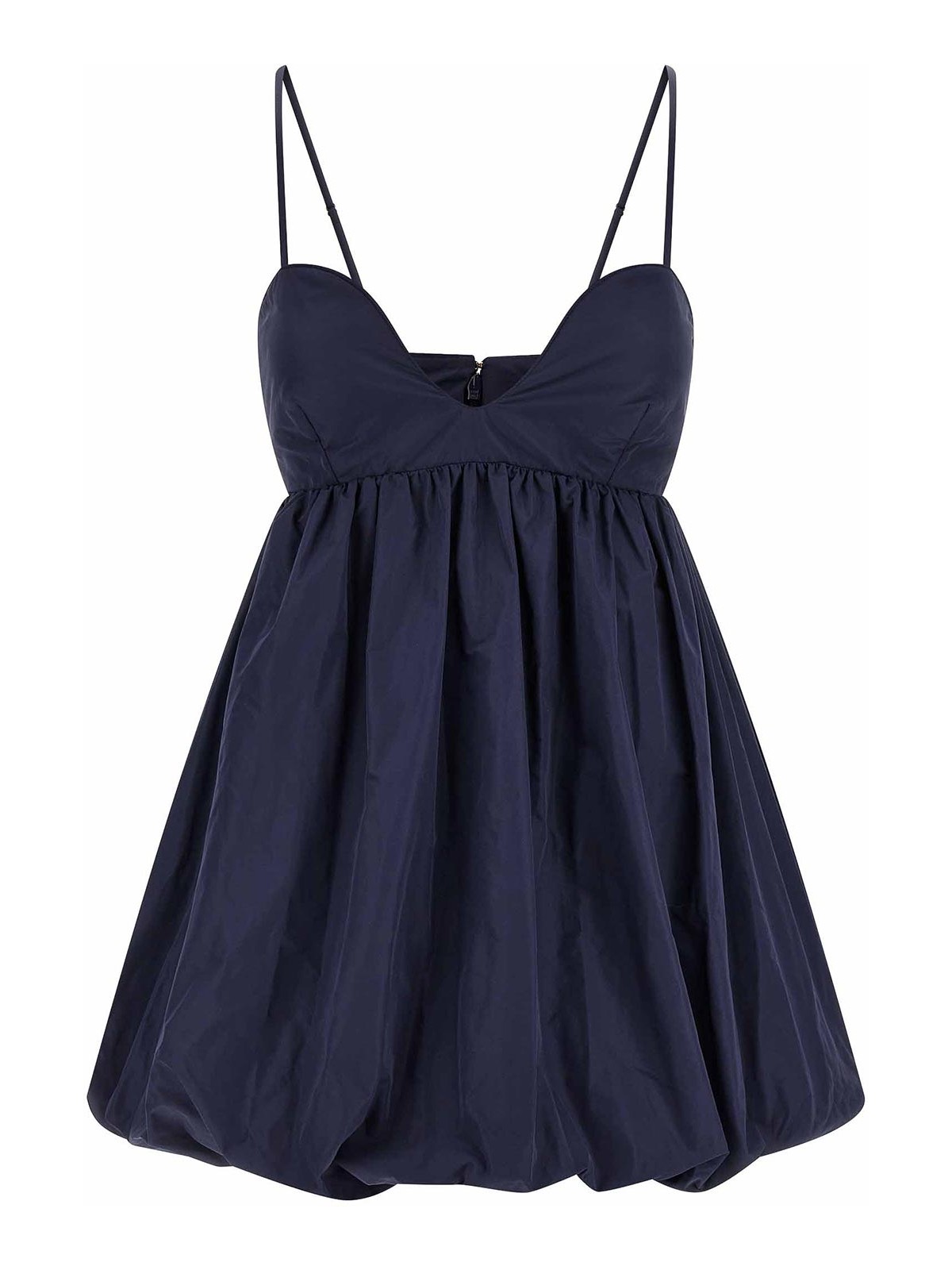 Taffeta mini 'dama' dress with heart-shaped neckline at the thin adjustable straps bustier top and balloon skirt back zip