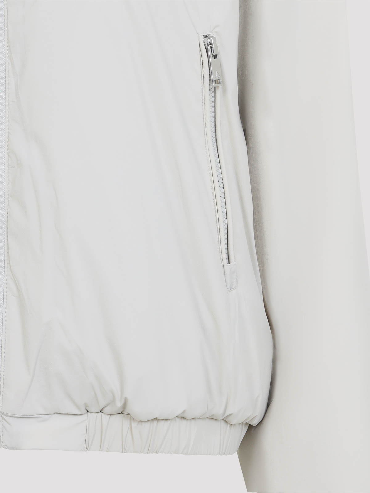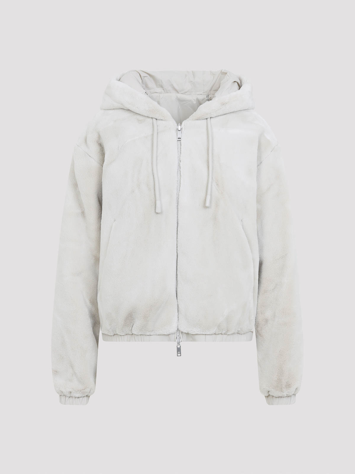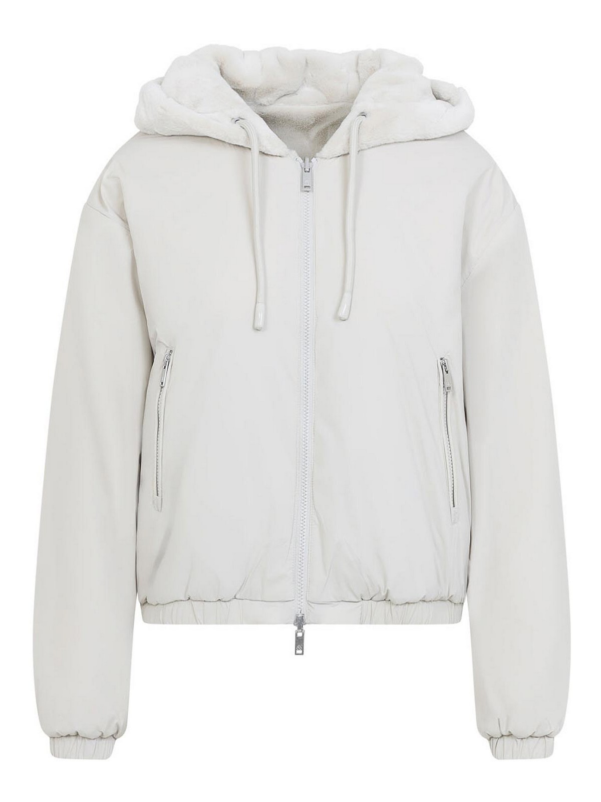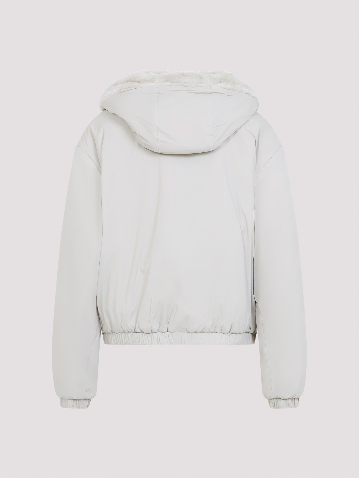 Moose knuckles alabaster white eaton bunny jacket pure alabaster white tonal hood drawstring zipped side zipped pockets long sleeves elastic cuffs and hem straight hem