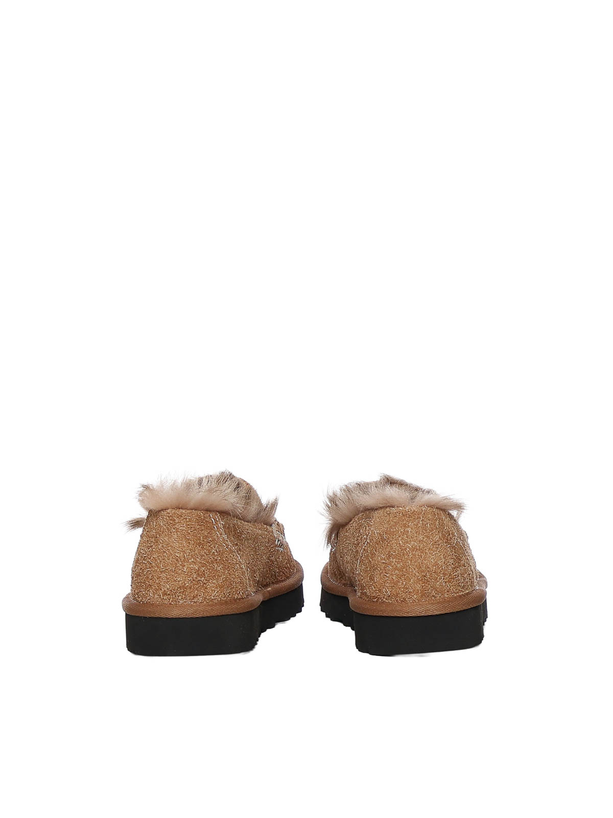suede upper, eva sole, round toe, suede strap, logo details, designer color: chestnut