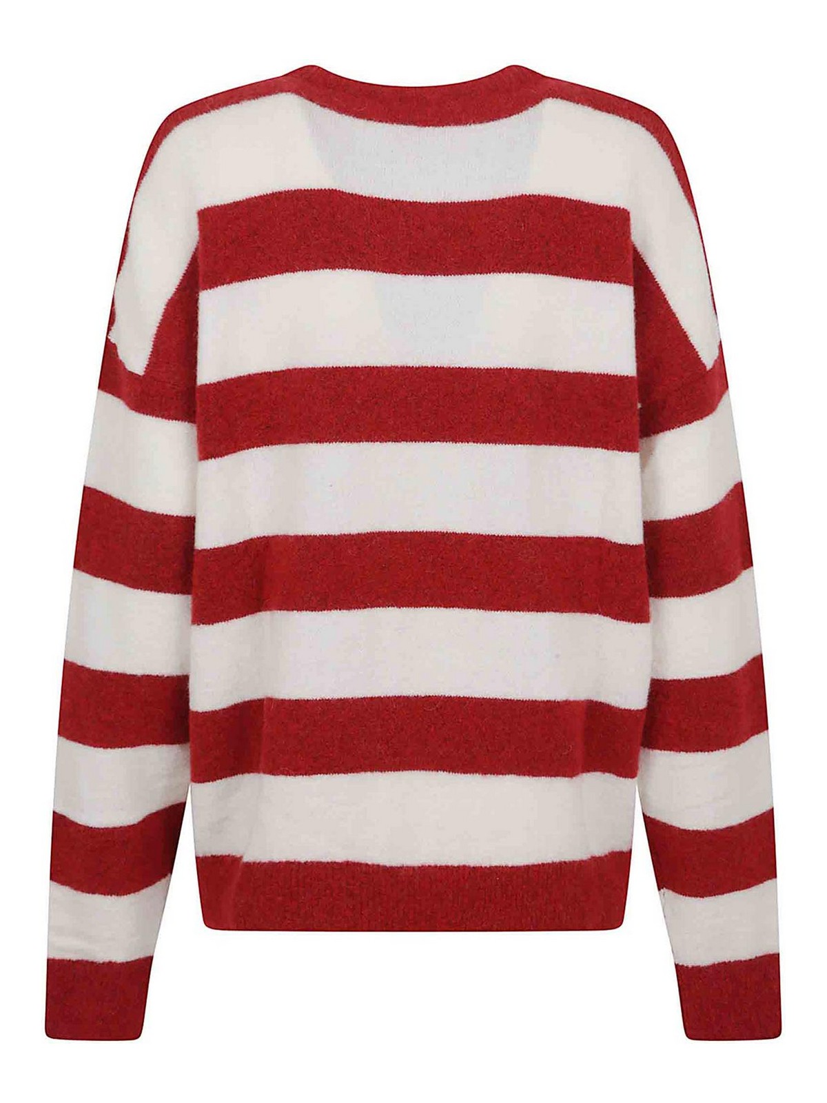 Red horizontal stripes, crew neck, long sleeves