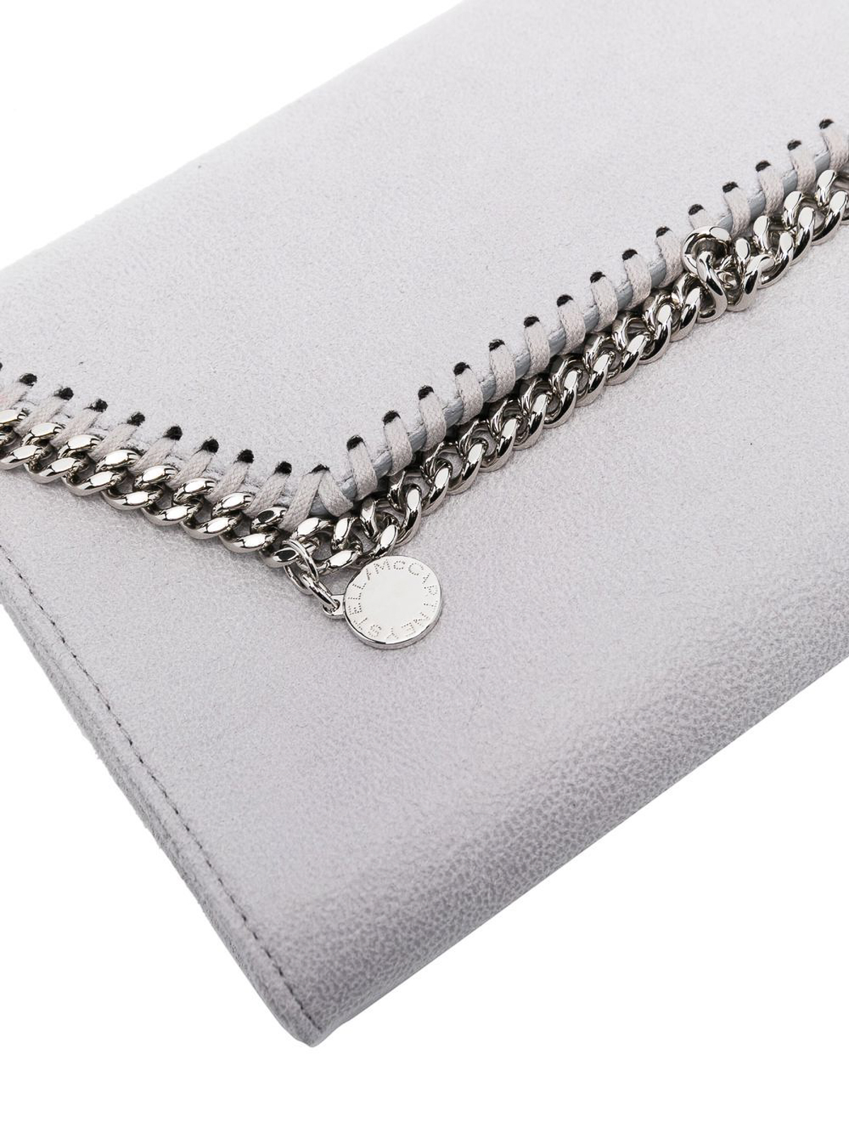 Mini falabella shoulder bag chain-link detailing, foldover top with magnetic fastening, chain-link shoulder strap, main compartment and ice grey.