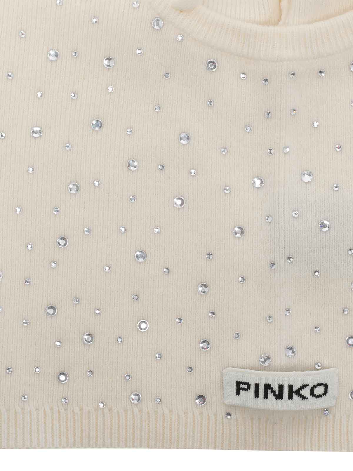 Pinko white finlandia balaclava, coulisse closure, applications allover