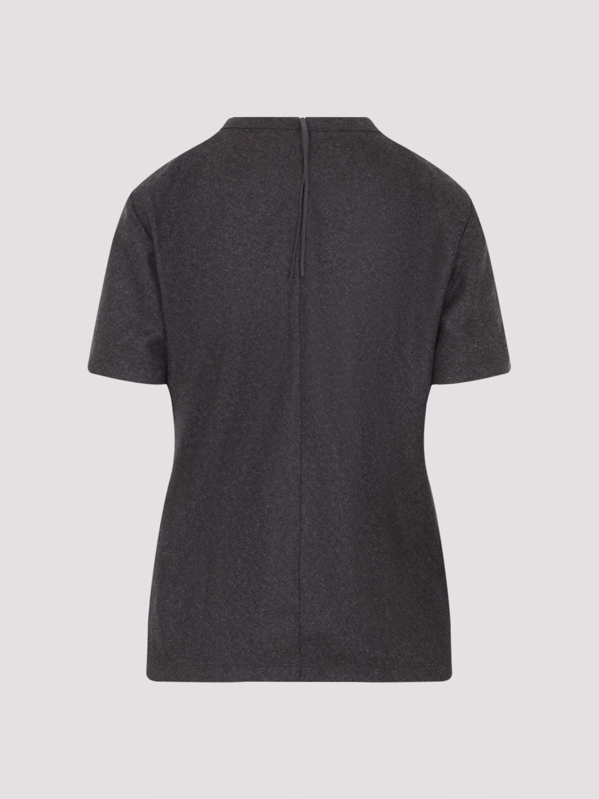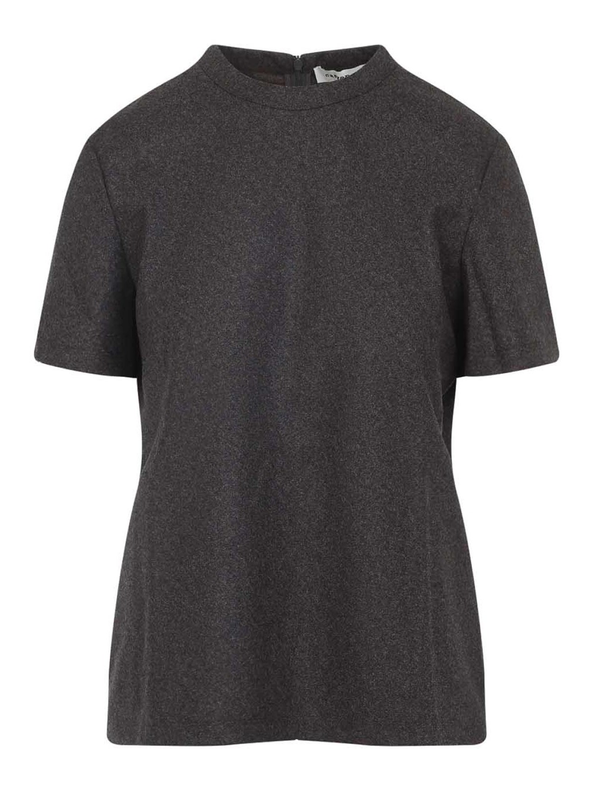 Carven fitted brown virgin wool t-shirt. crafted from mlange brown virgin wool, round neckline, short sleeves, fitted waist, back central zip fastening, straight hem.