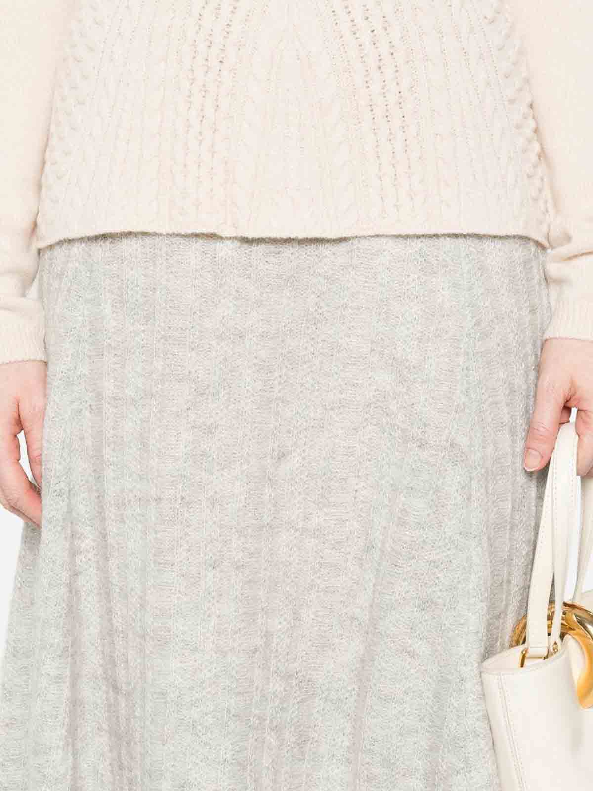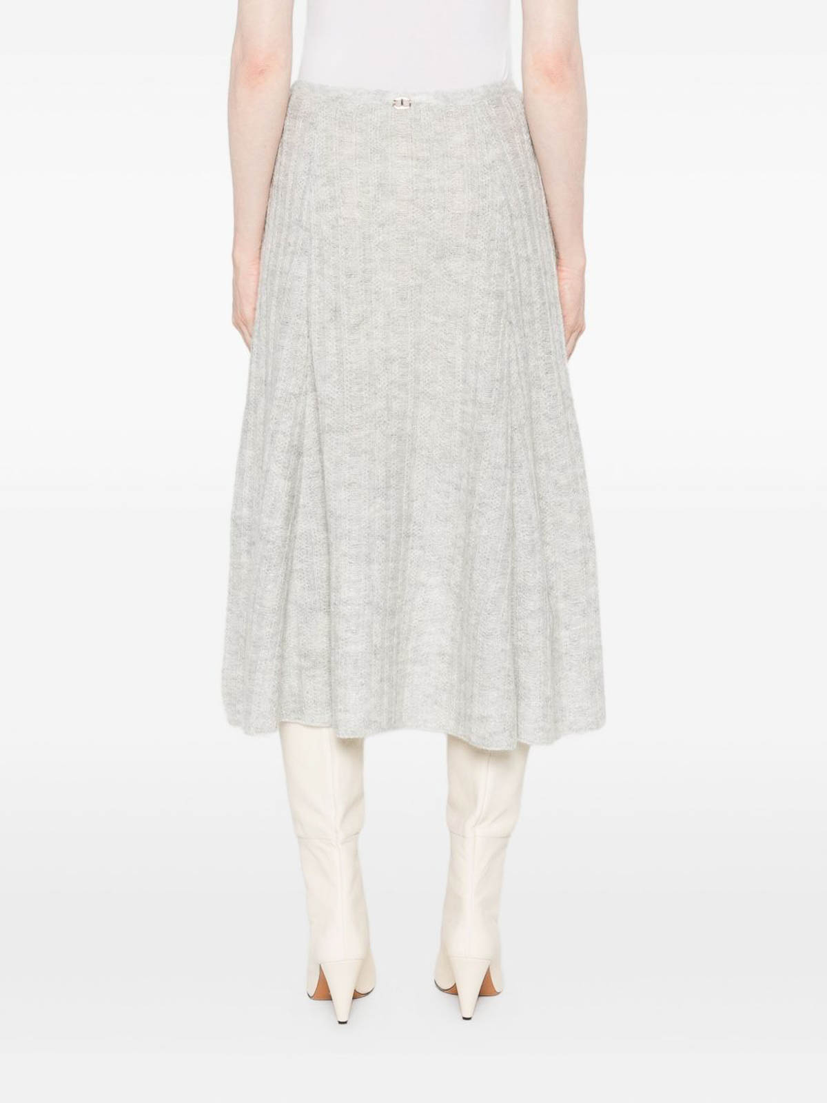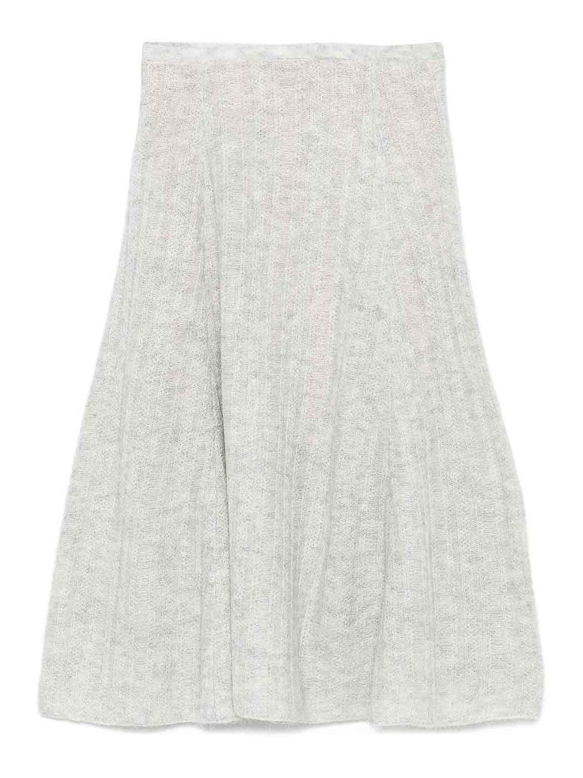 Light gray ribbed texture A-line design flared hem knee length elasticated waist
