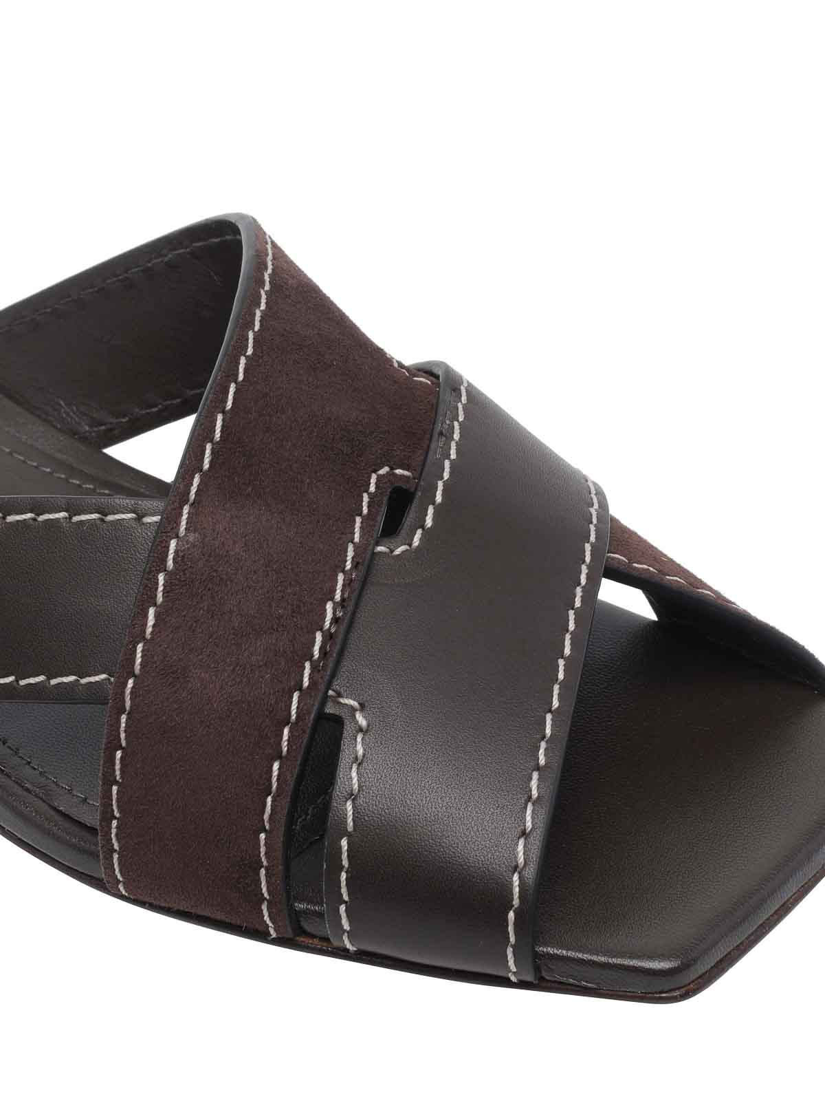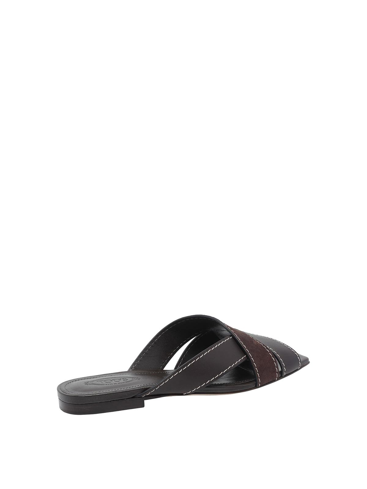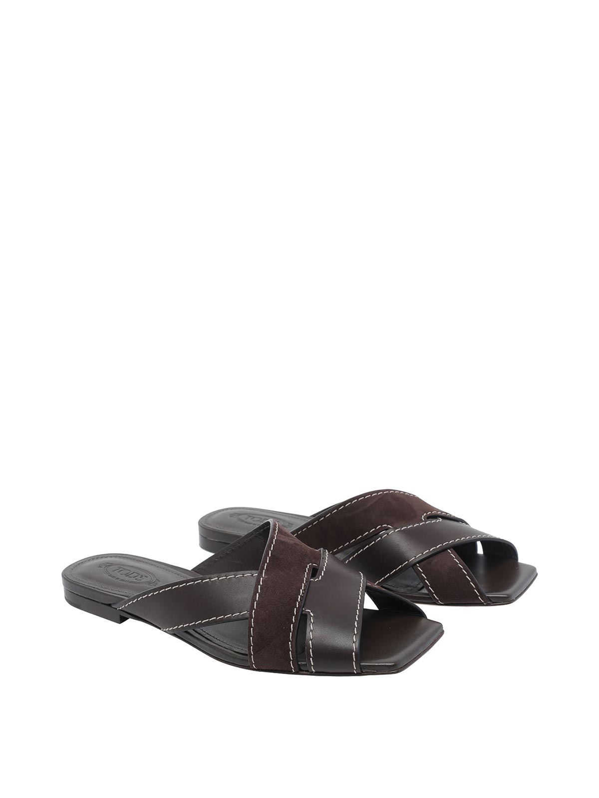 Tod's brown flat sandals, leather upper, squared toe