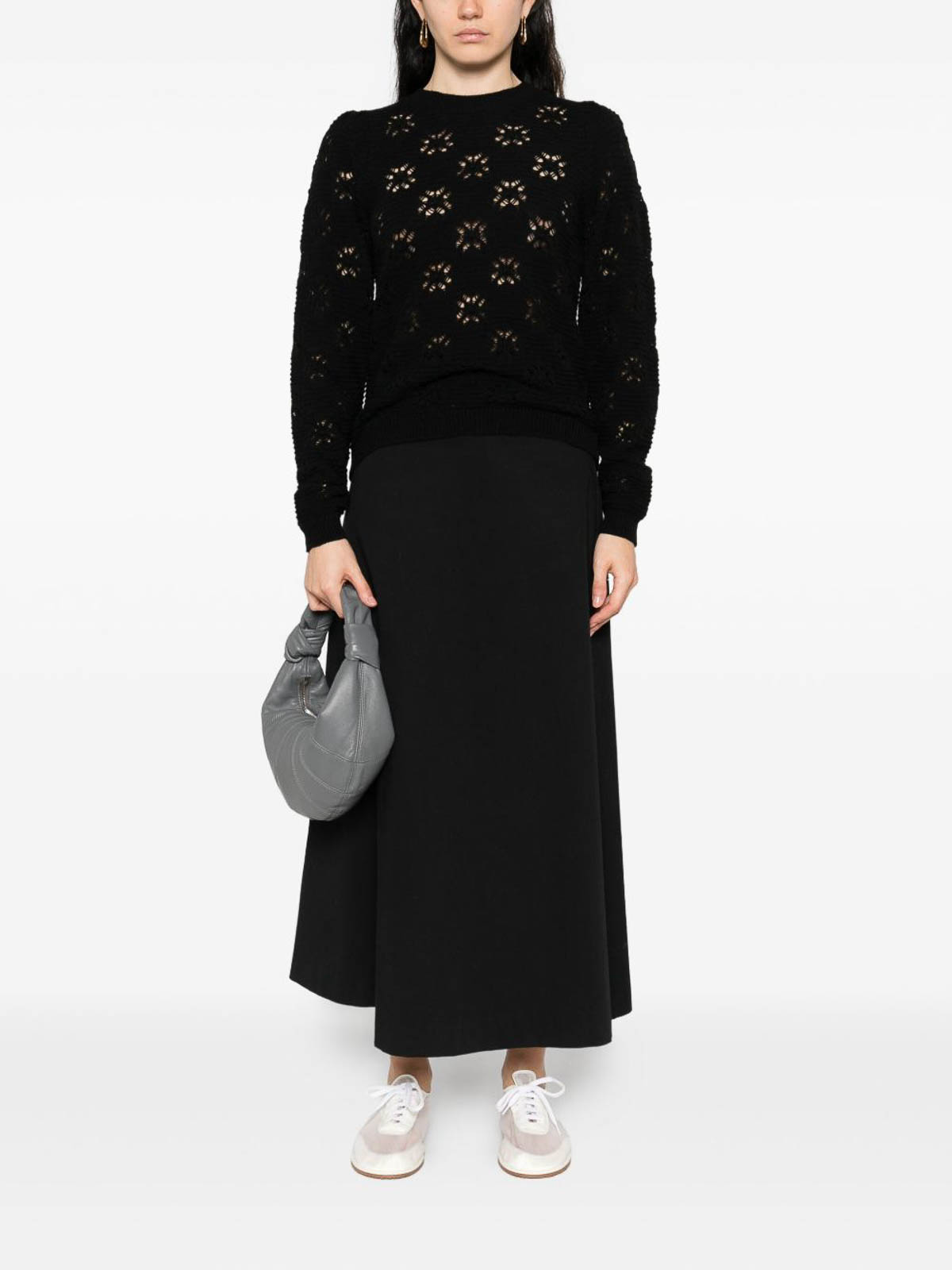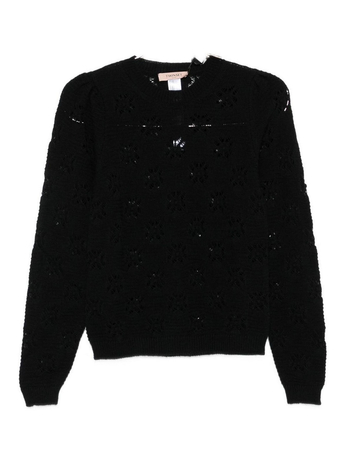 Black Flower motif, long sleeve crew design crop open stitch processing