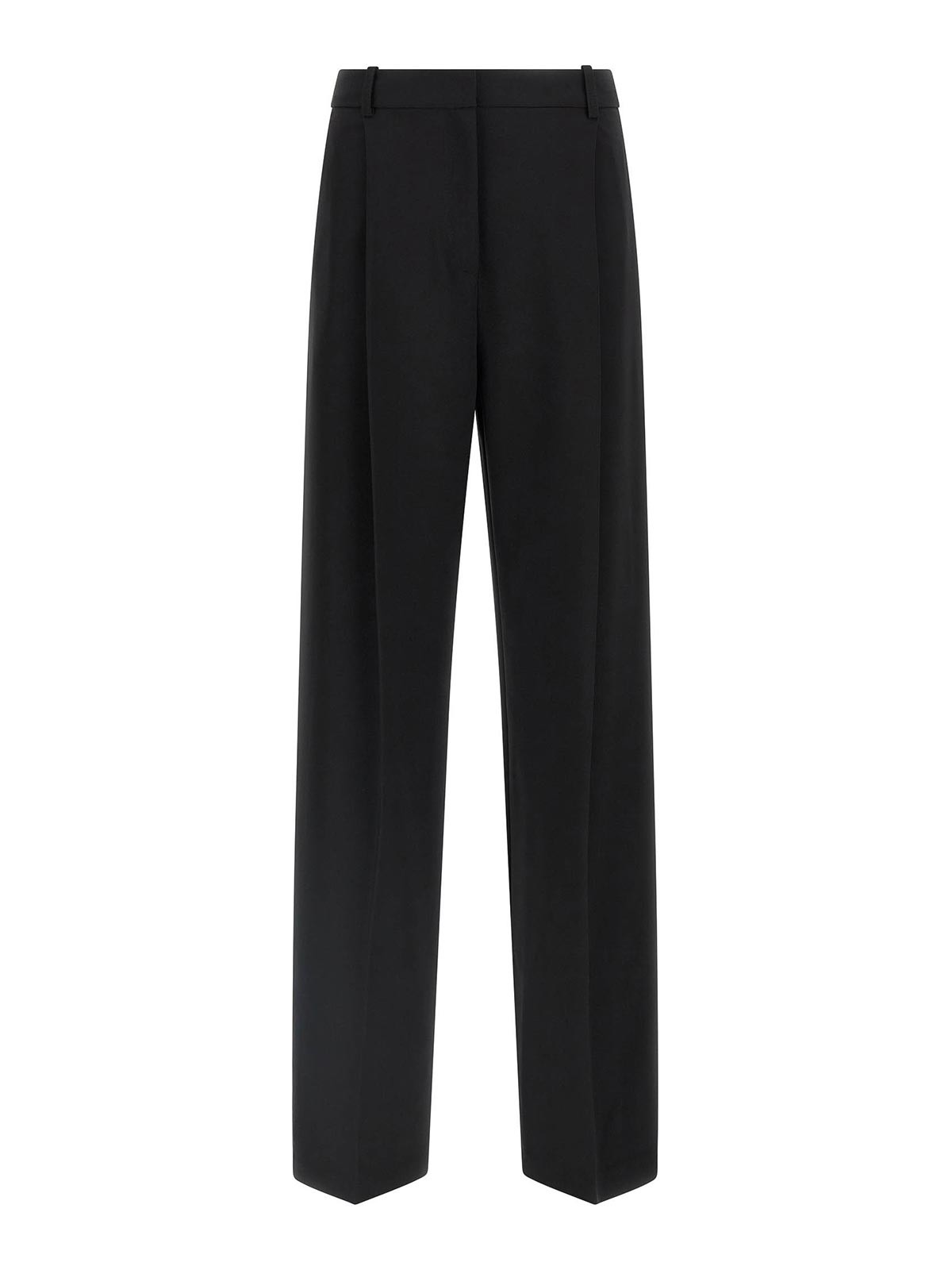 Fluid cady pants, pince, stretched pleat, wide and straight leg, hook and front button zip closure, pockets