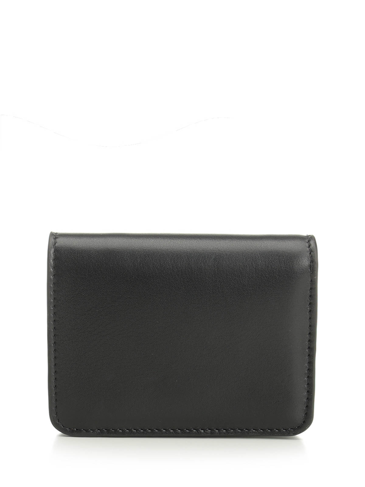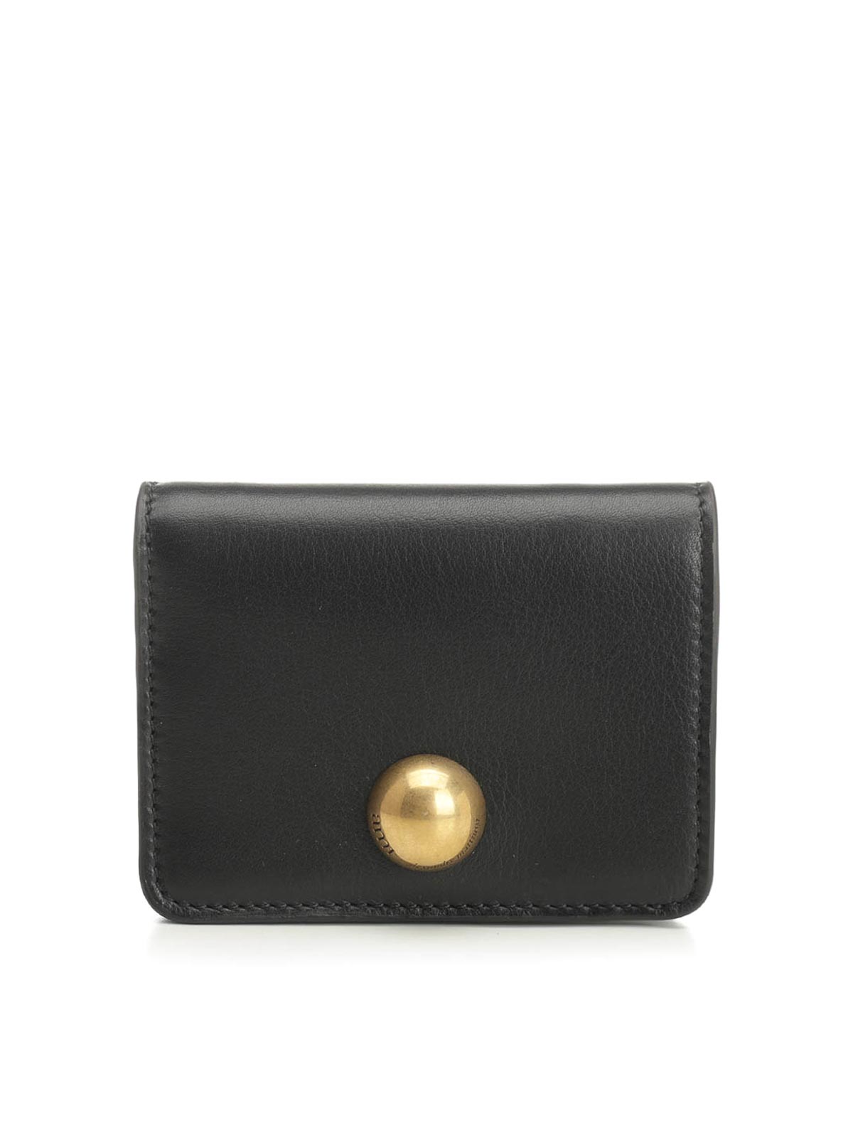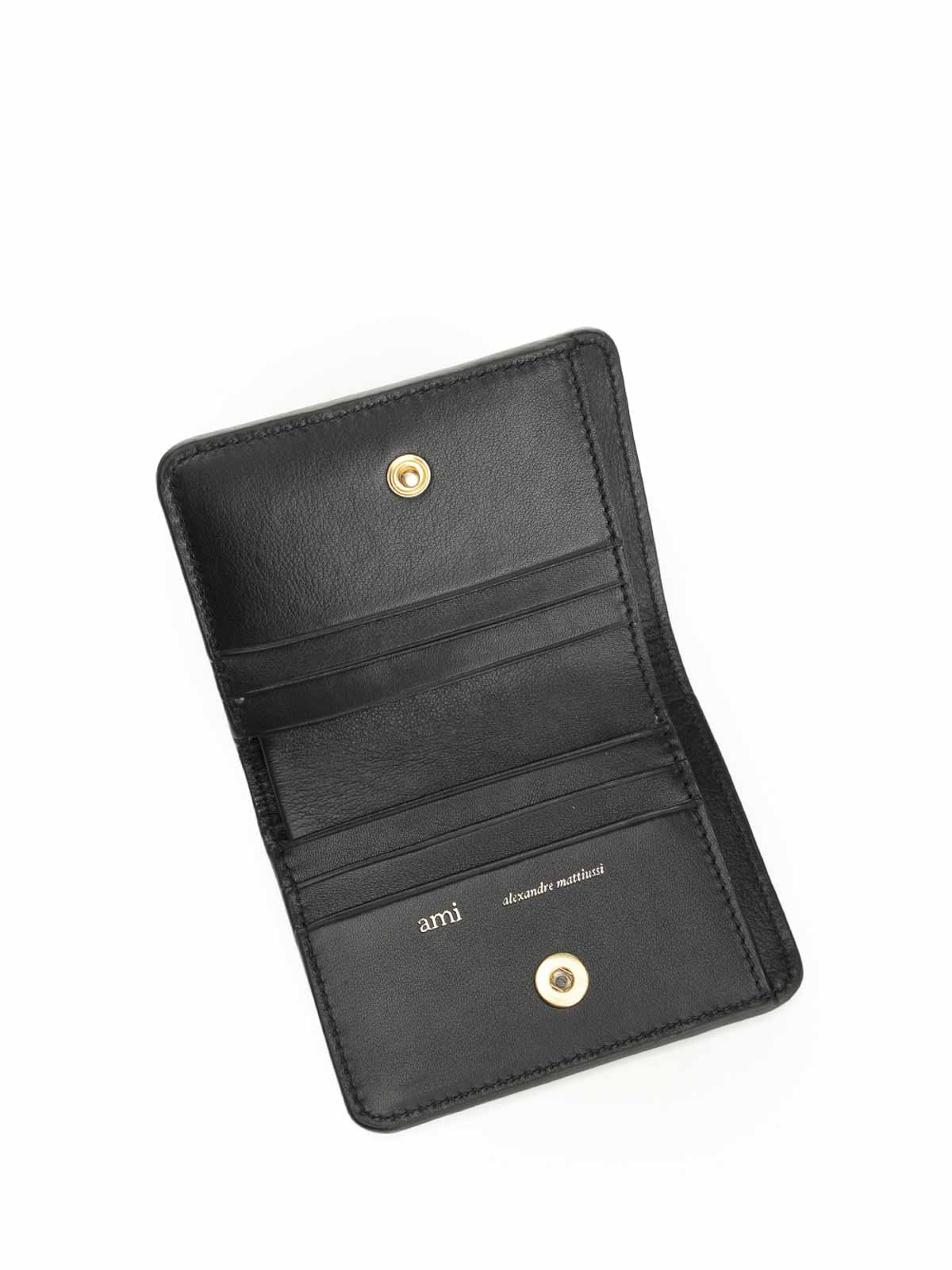 Ami's carrousel foldable wallet in smooth with snap button six card slots and one bill compartment a half sphere with engraved ami alexandre mattiussi logo and