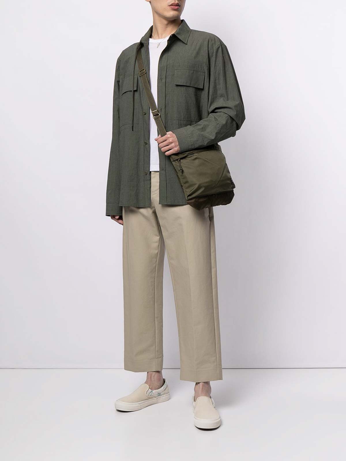 Olive green square shape top zip fastening front zip-fastening compartment adjustable shoulder strap