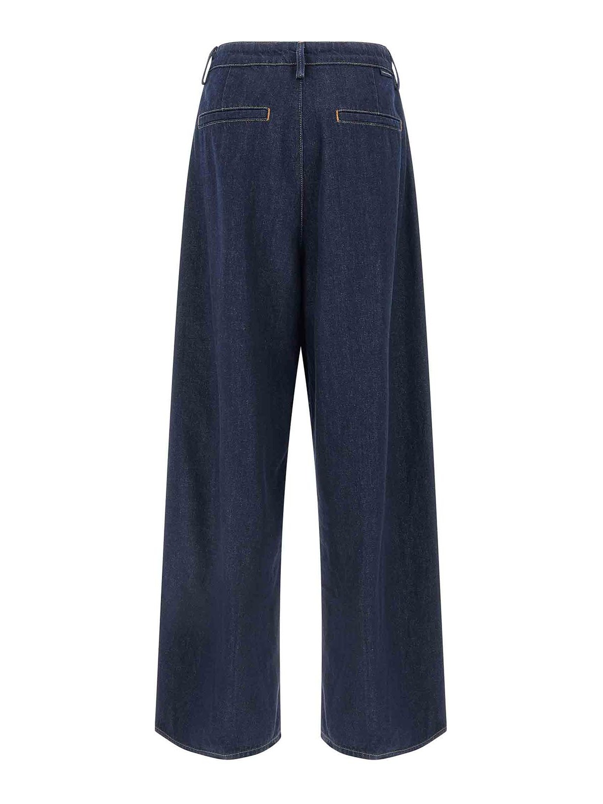 franklin' cotton denim jeans and modal, contrast stitching, high waist, pince, extra wide and straight leg, pockets.