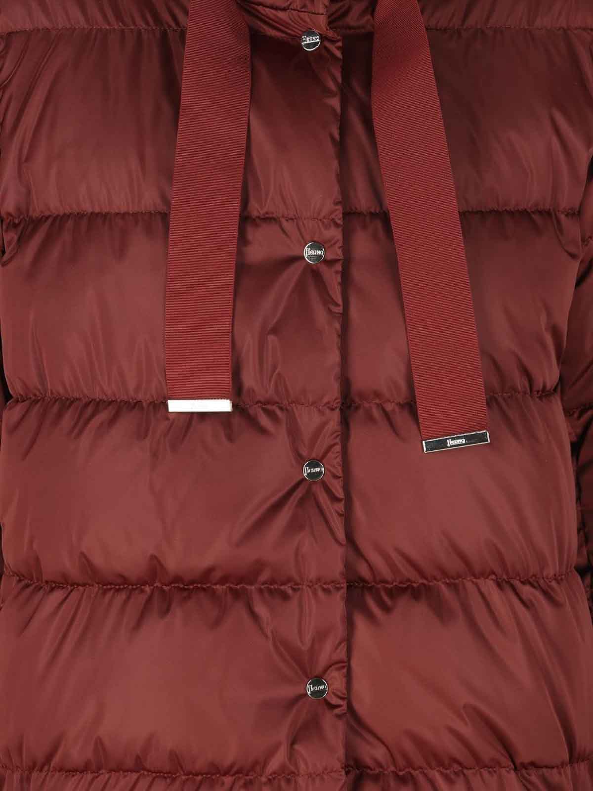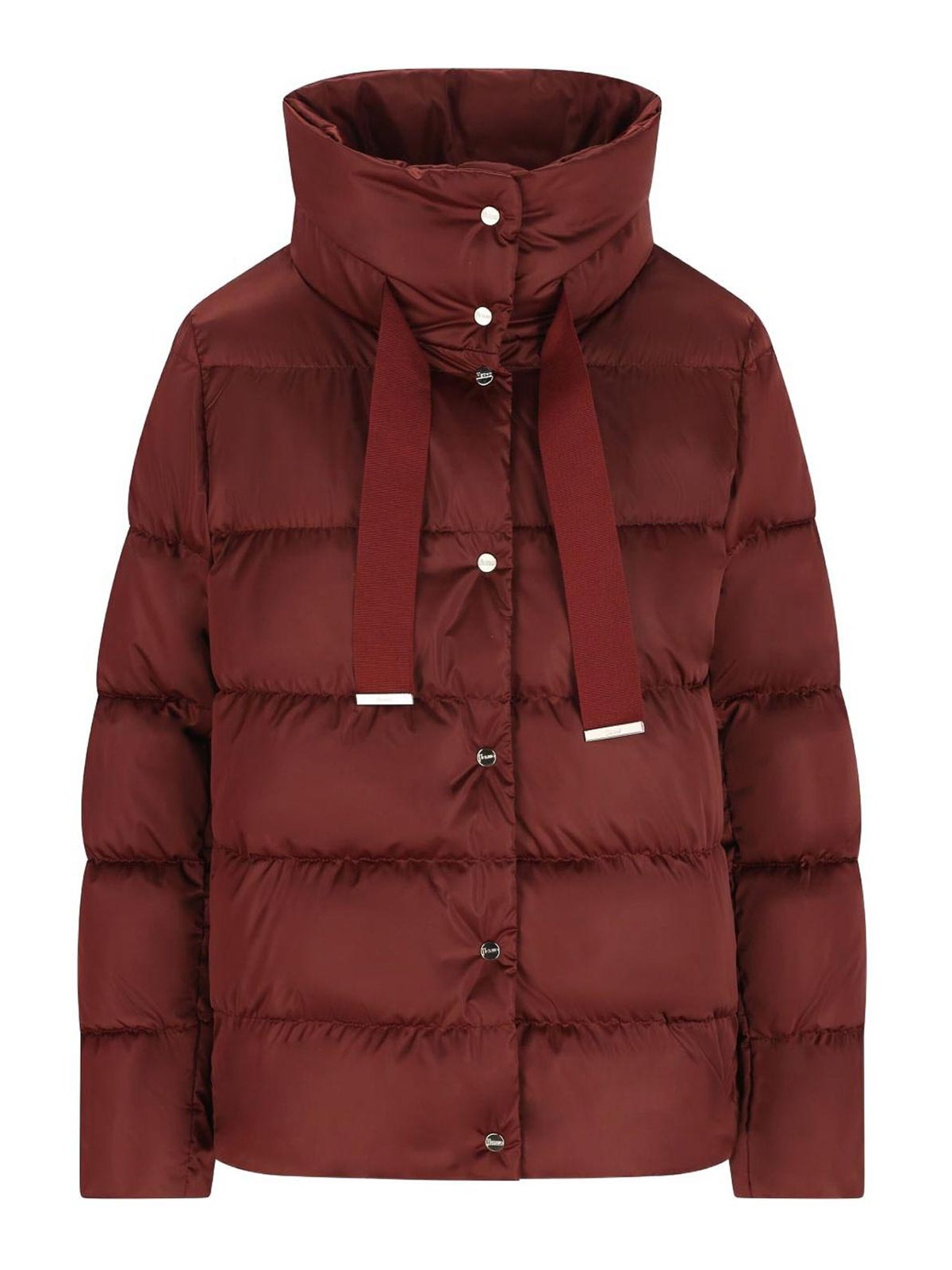 Brown padded jacket featuring a funnel neck ribbon and button from herno for a chic and modern look