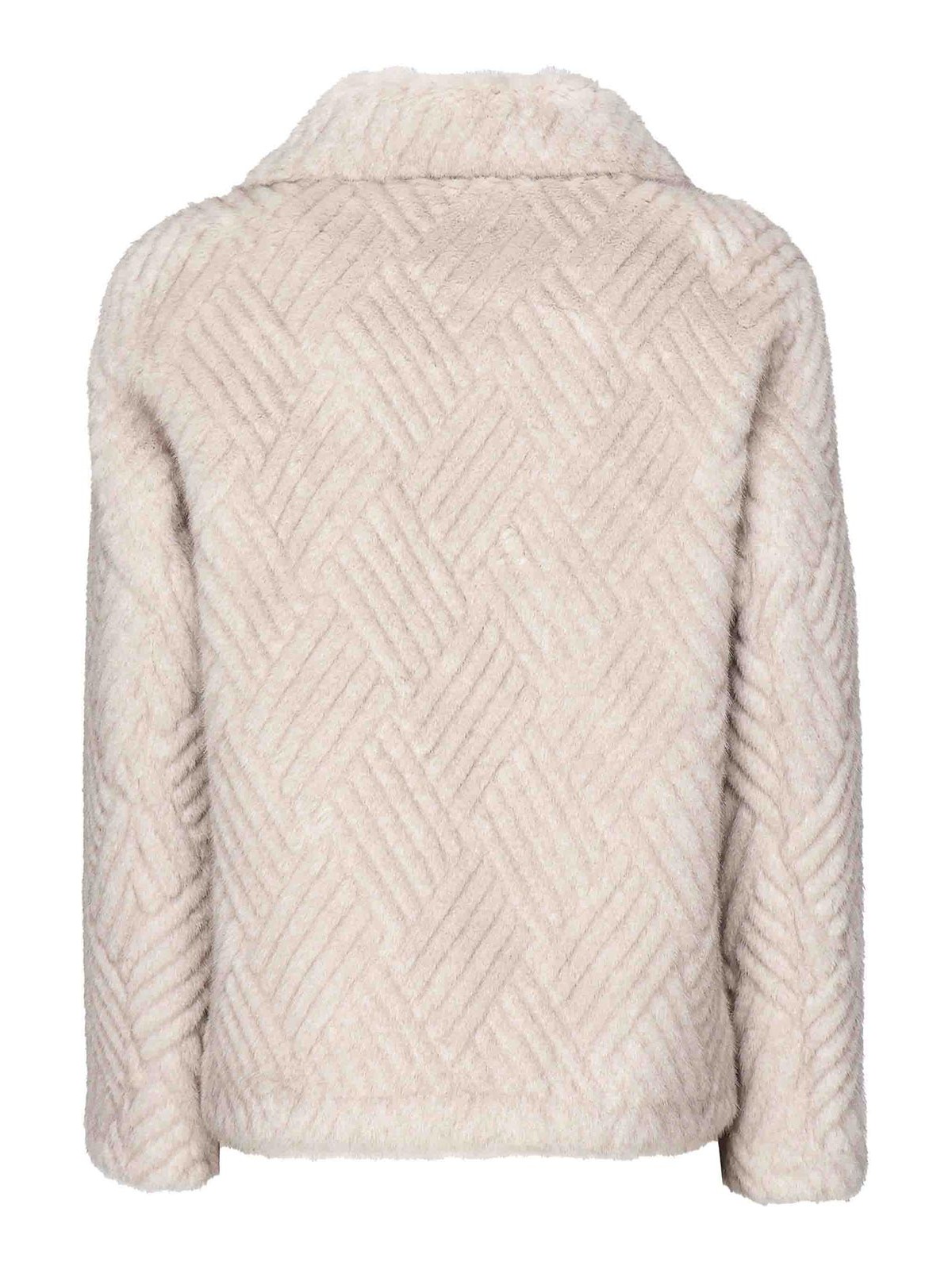 Fur jacket with double, breasted revers long sleeves pockets color