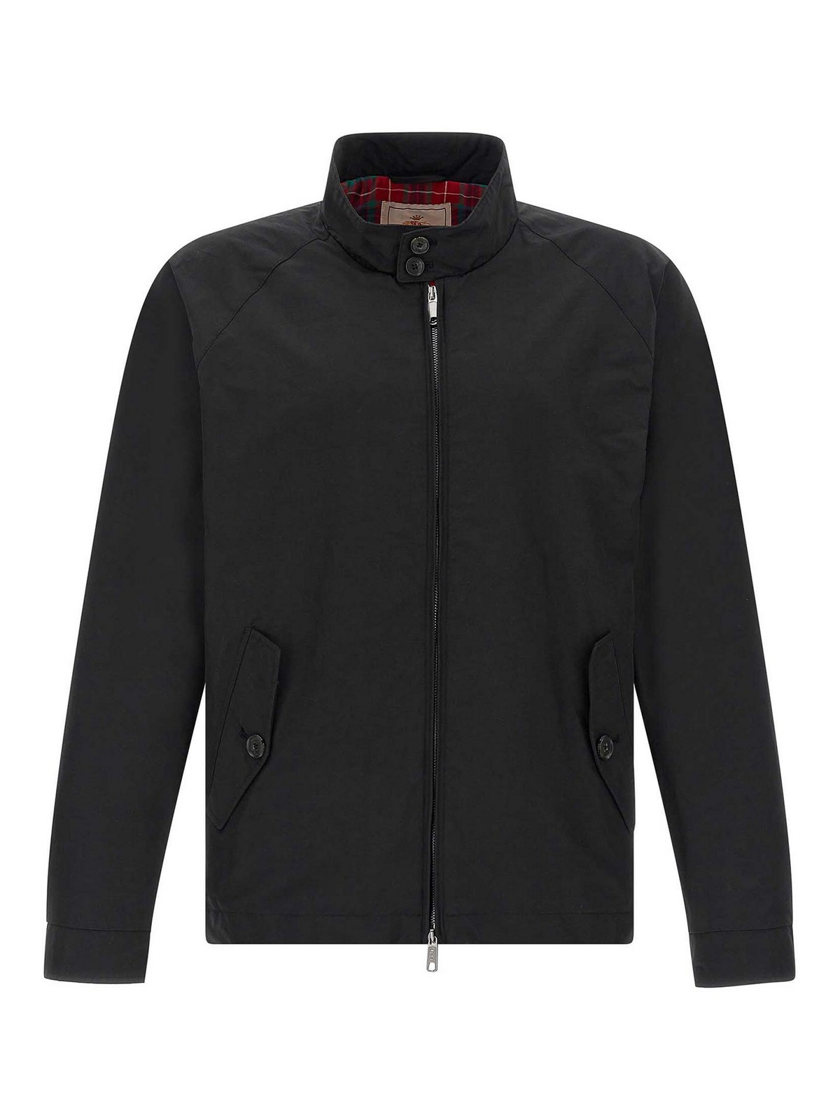 g blend jacket with check print zip pockets long cuffed sleeves button crew neck