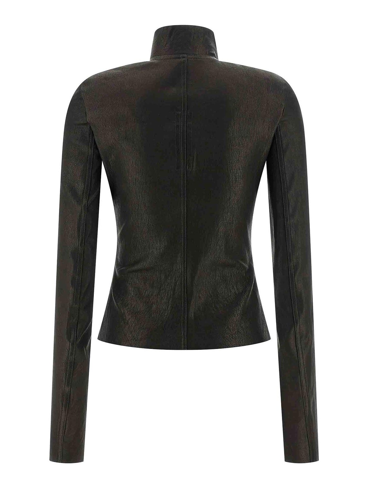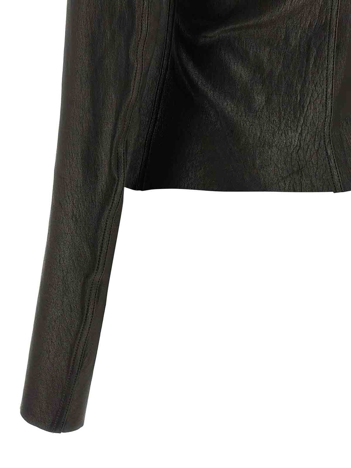 gary' jacket in stretch lambskin leather, unlined, high neck, asymmetrical front zip closure, pockets, long sleeves.