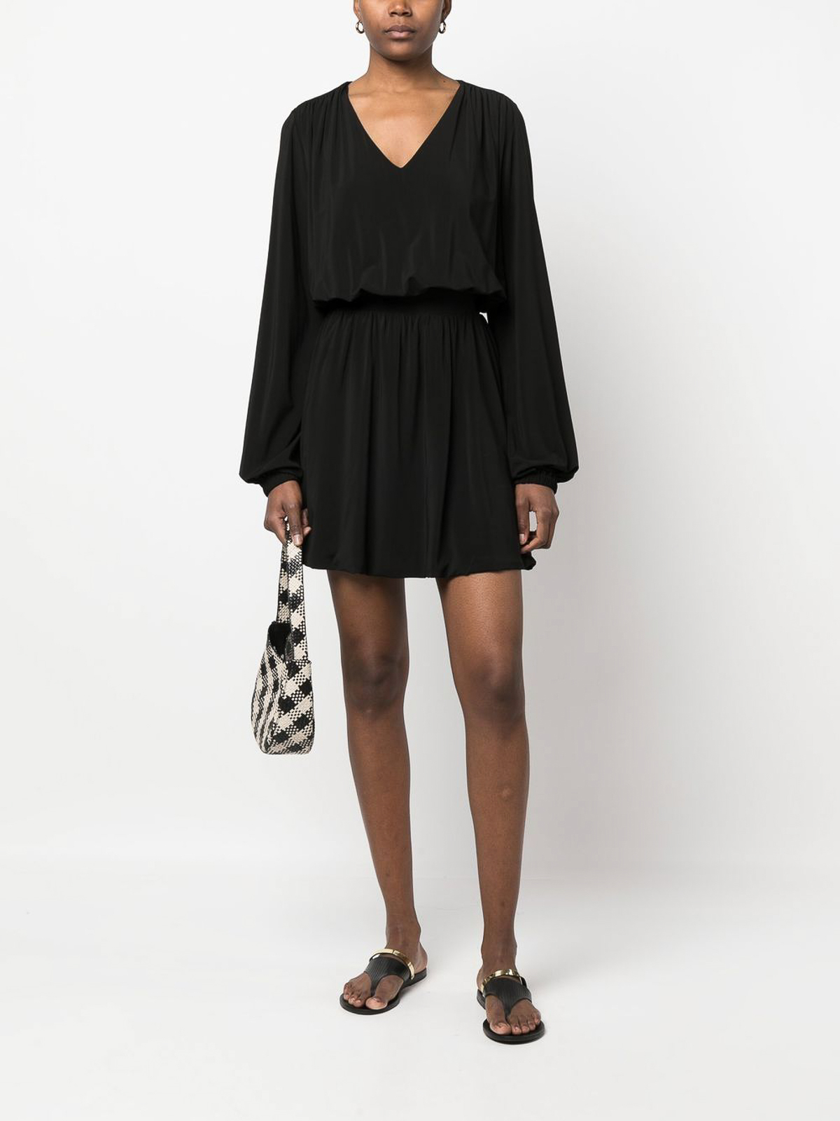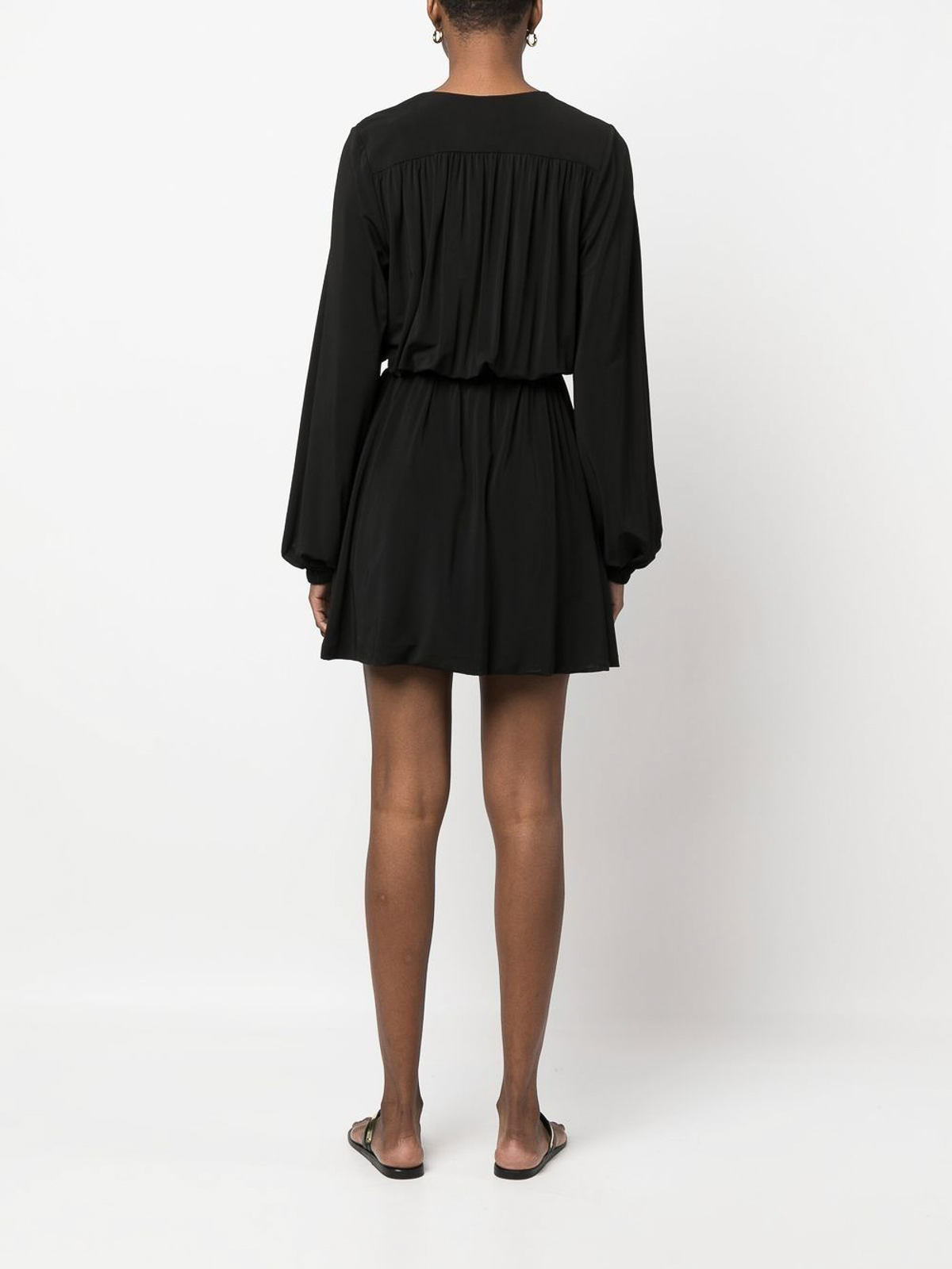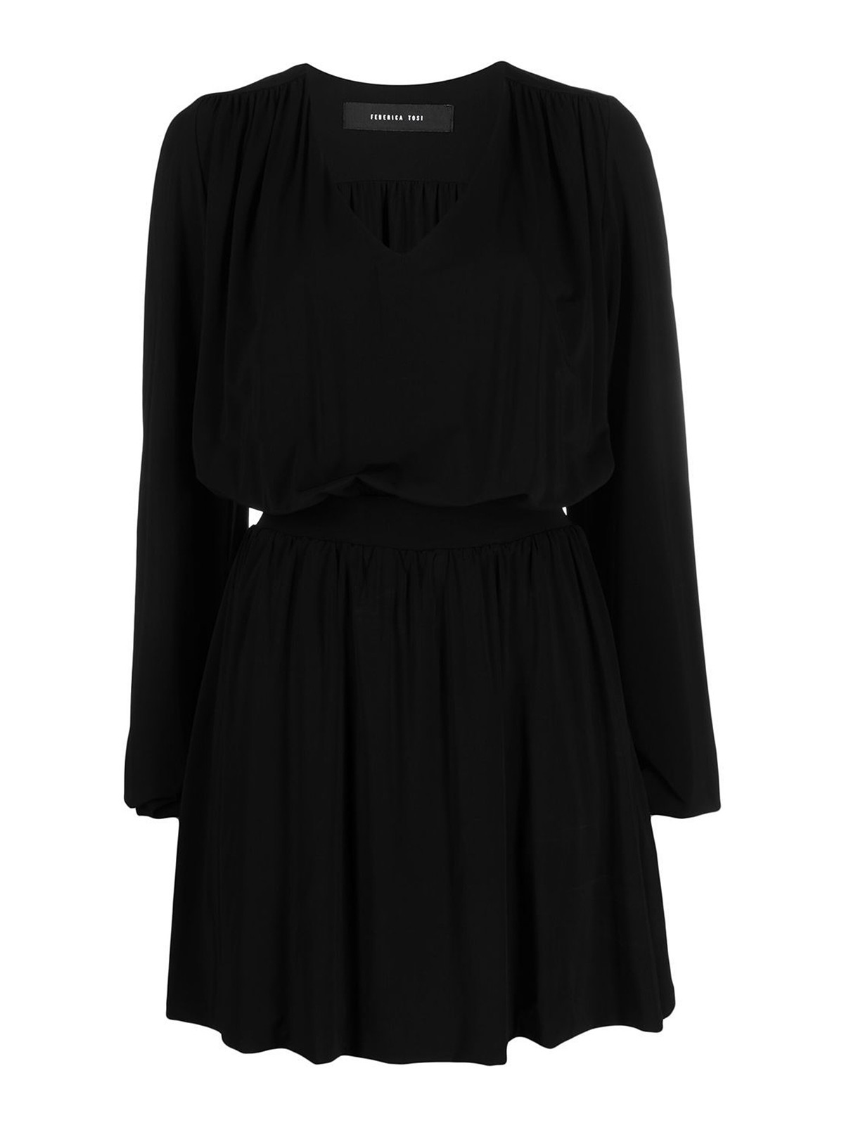 Gathered-detail v-neck dress from federica tosi featuring gathered detailing, v-neck, long sleeves, flared, above-knee length and black.