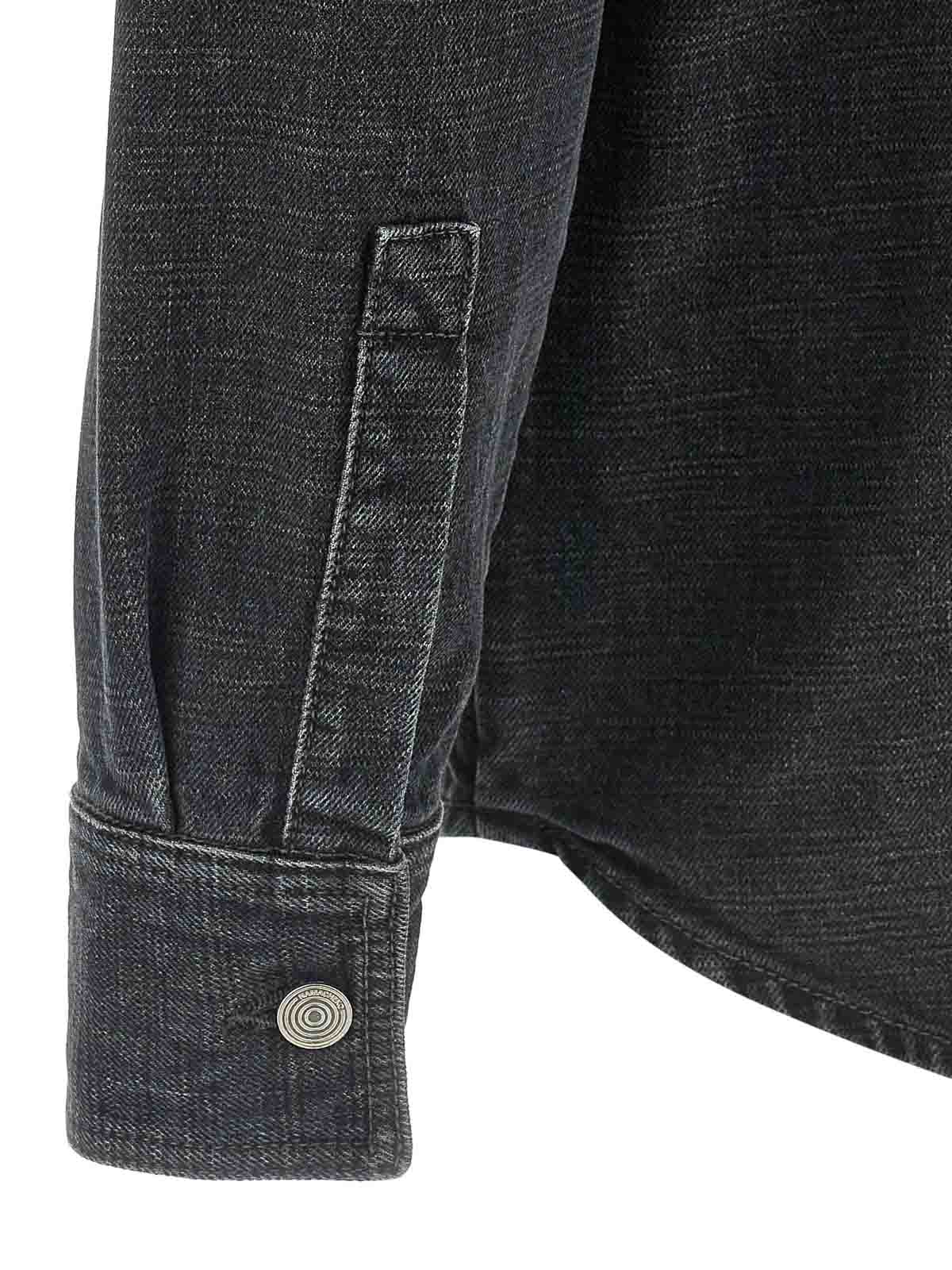 gervis braided' denim shirt made of flamed yarn woven like a canvas and stone washed with streaked effect, braided collar, pockets, front button closure, long sleeves with cuffs and dropped shoulder.