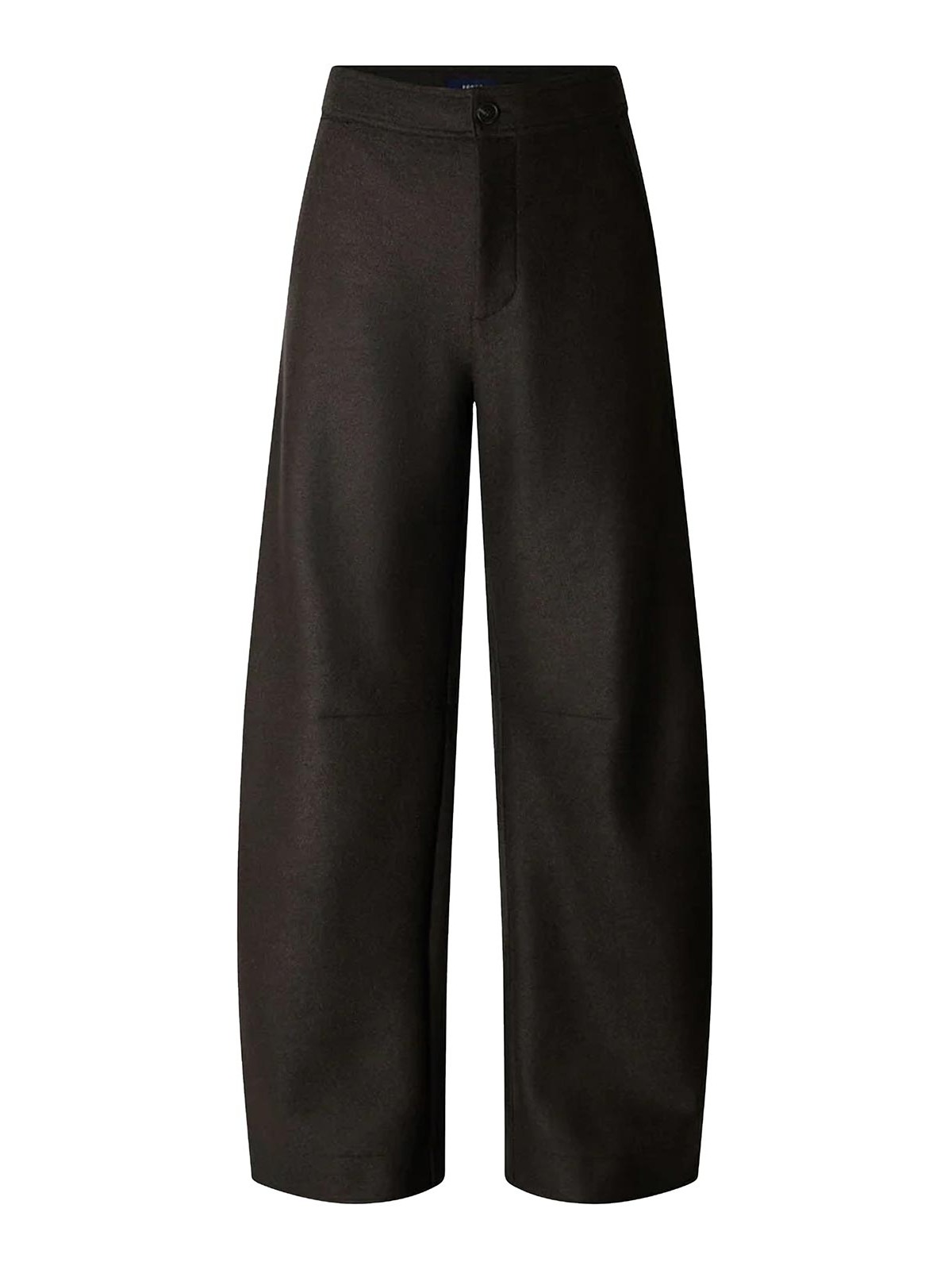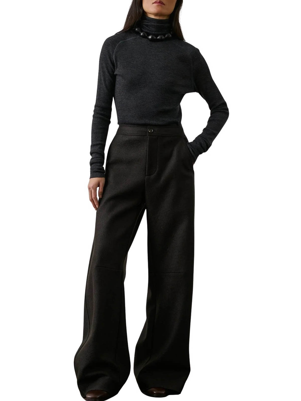 Soeur trousers, a garment that combines elegance and comfort. Featuring a loose, flowing silhouette, it features a high waist that flatters the figure, with a zip and button closure for a secure fit. Two side pockets and two back welt pockets add functionality to the clean, sophisticated design. Pleats at the knees lend a tailored touch, while the 100% virgin wool composition ensures warmth and breathability. Ideal for an urban-chic look or for more formal occasions, the Gibson pant is a must-have for those seeking style and quality.