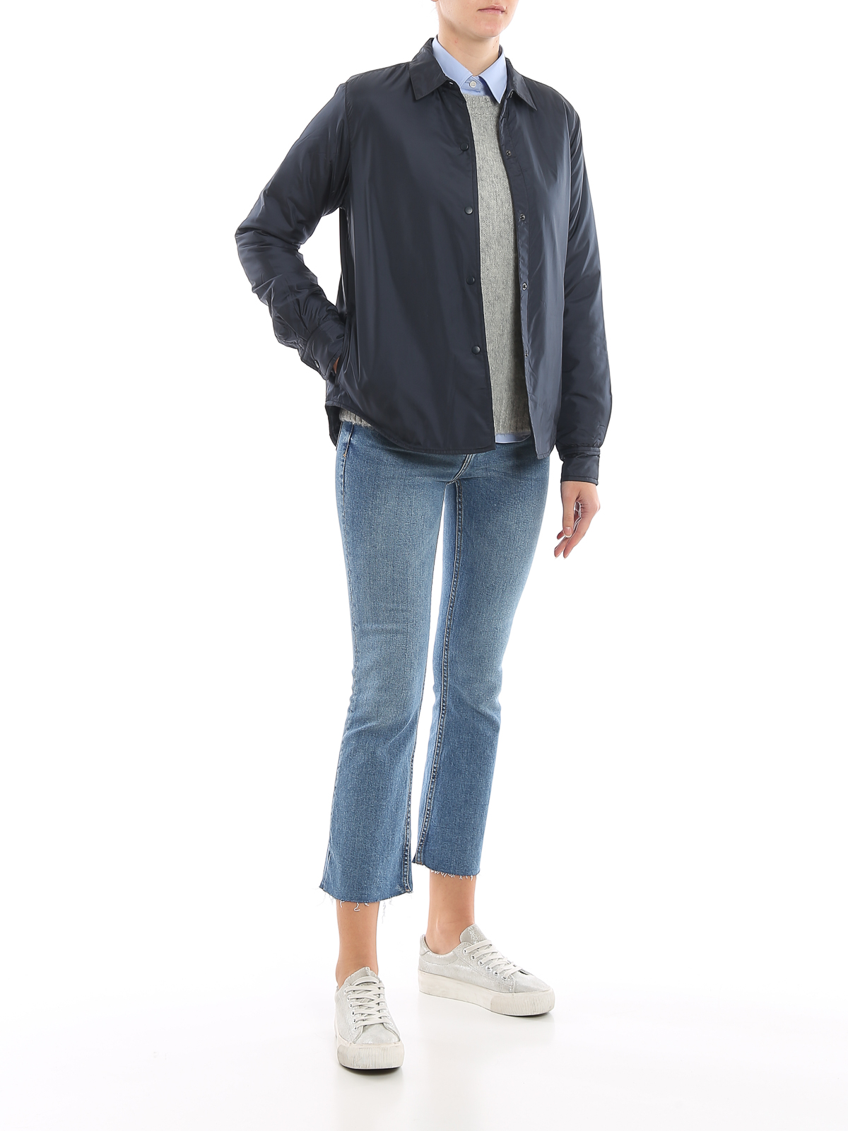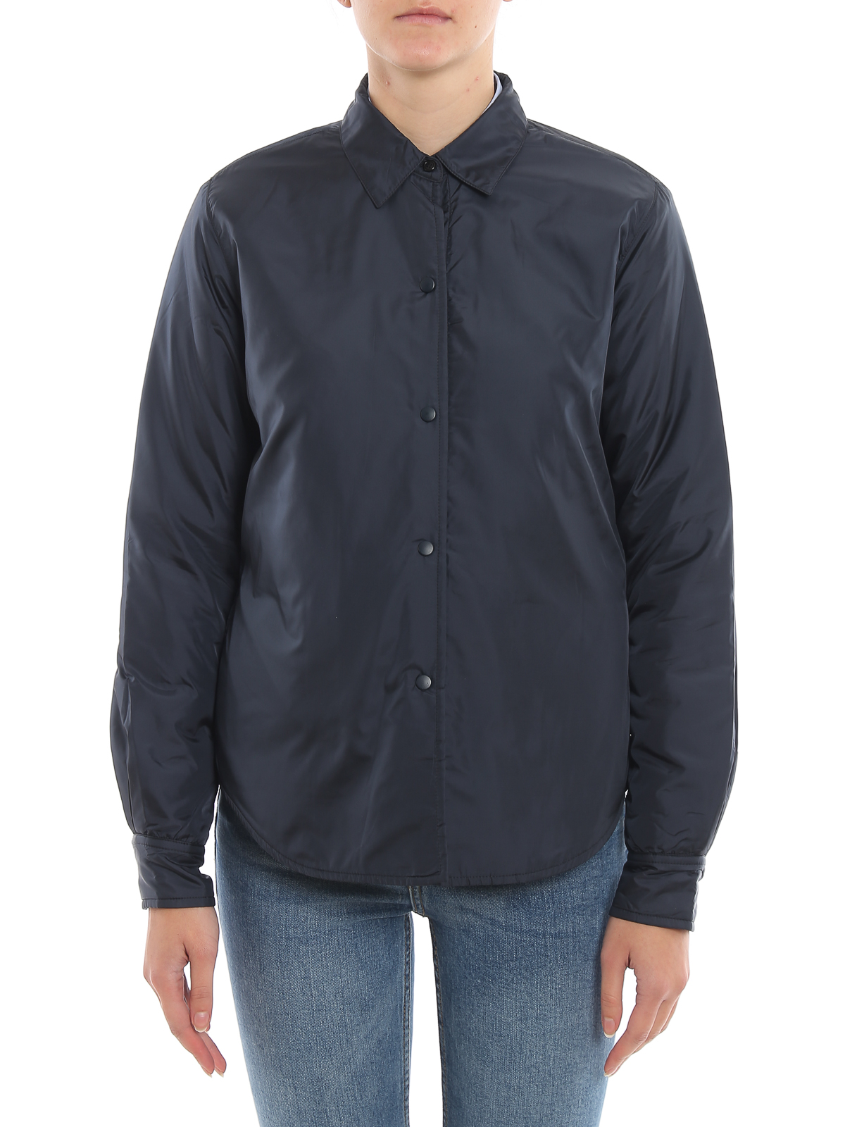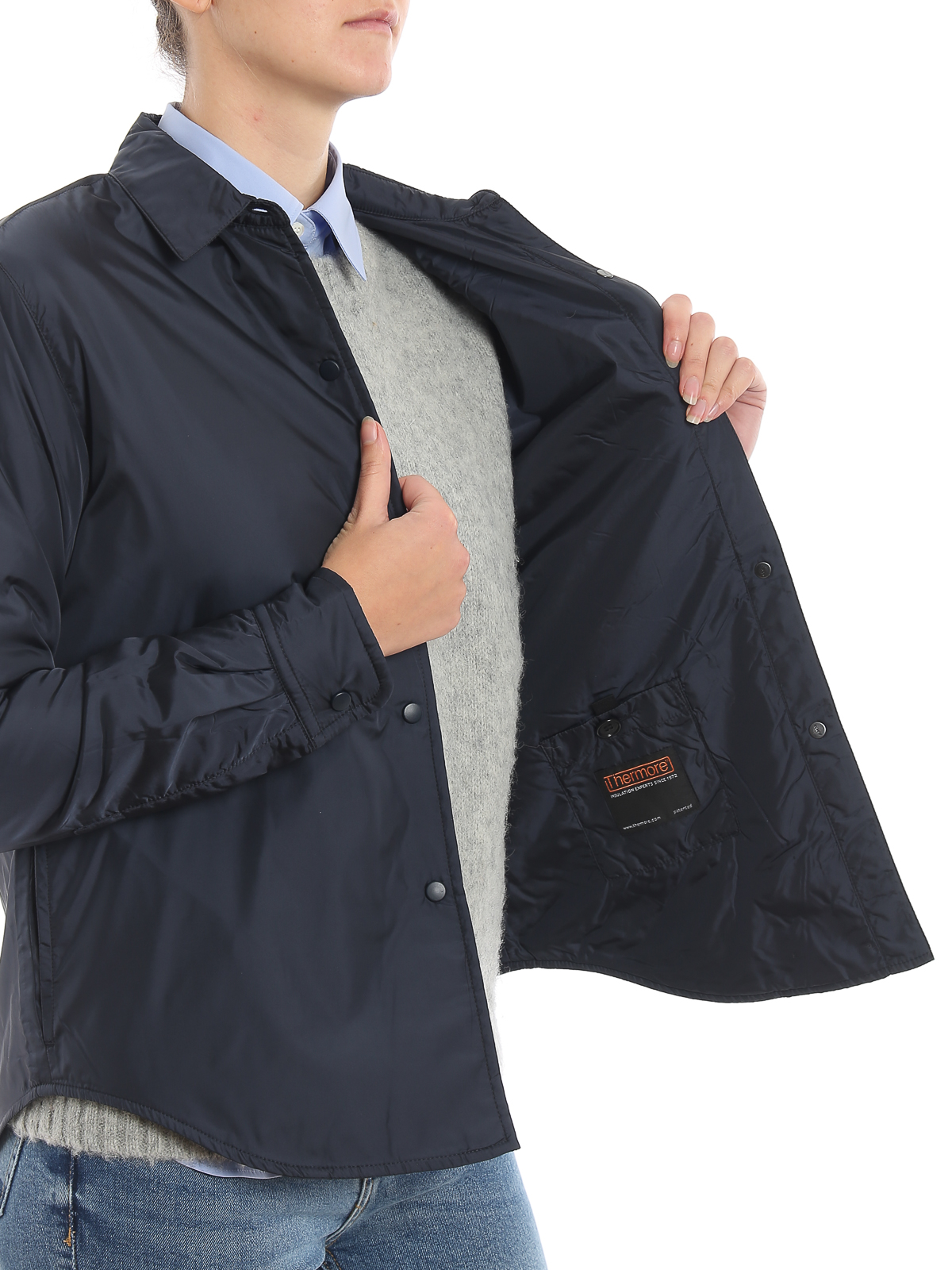 Water repellent 40 den. nylon taffeta shirt style jacket detailed with Thermore® padding and tonal press-stud fastening.