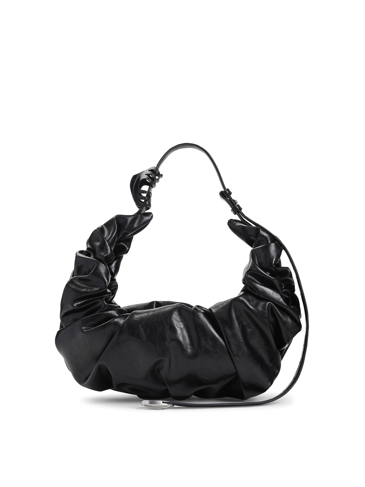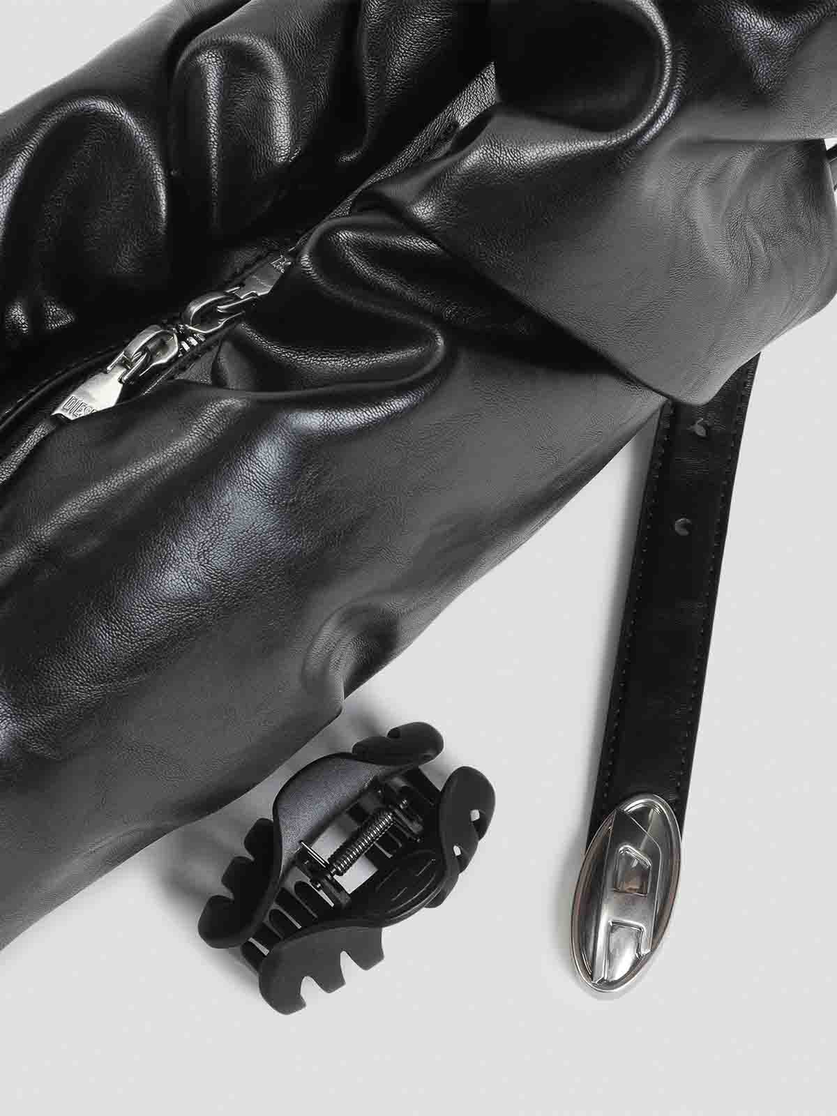 Diesel grab, d hobo l black handbag crafted from black artificial, toned hardware gathered construction belt, inspired design with plaque logo hairclip two, way zip fully lined