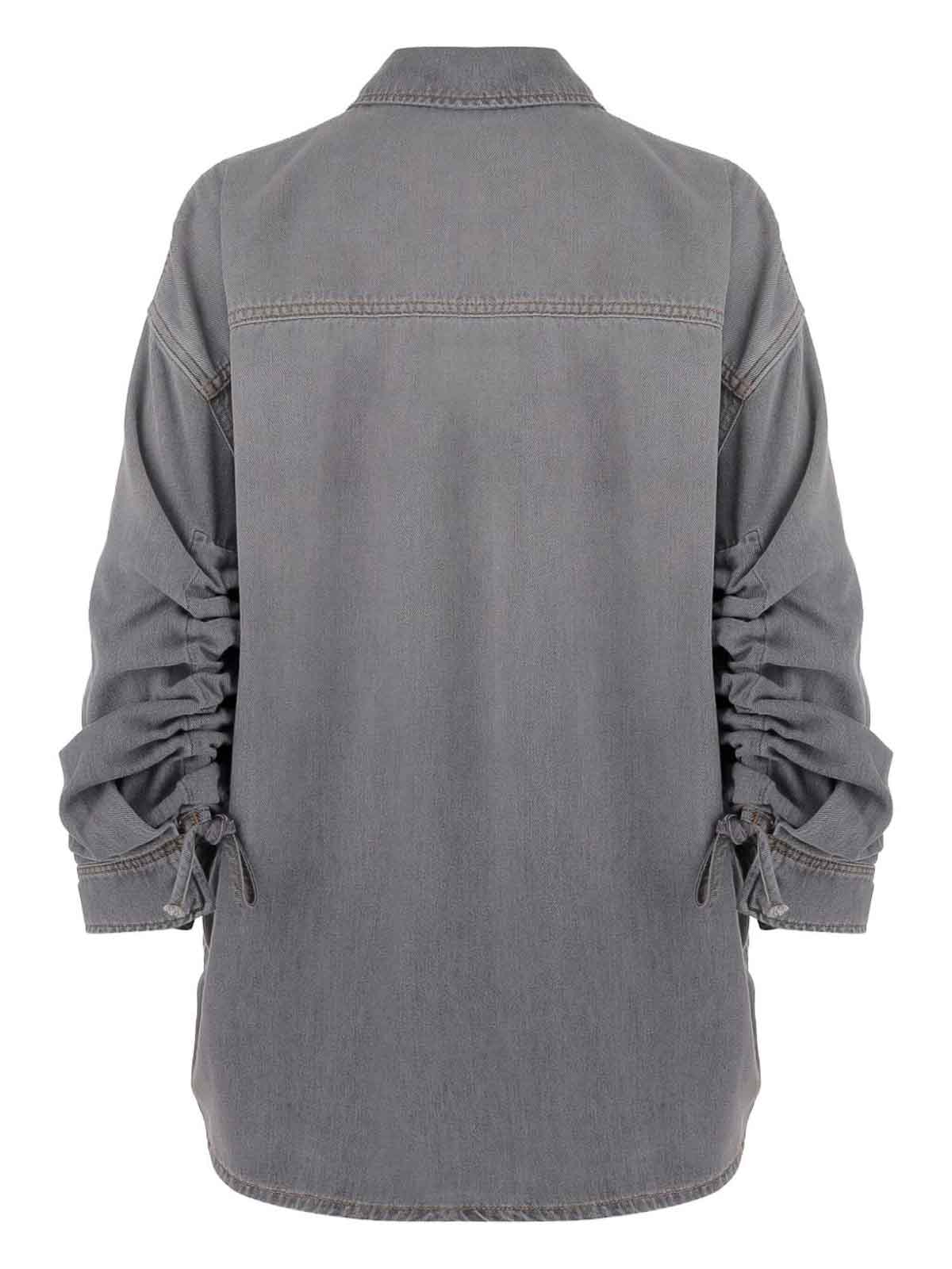 Darkpark's gray denim shirt features a classic collar a button- and long gathered sleeves with self-tie cuffs a refined and modern piece that adds a touch of sophistication to everyday looks