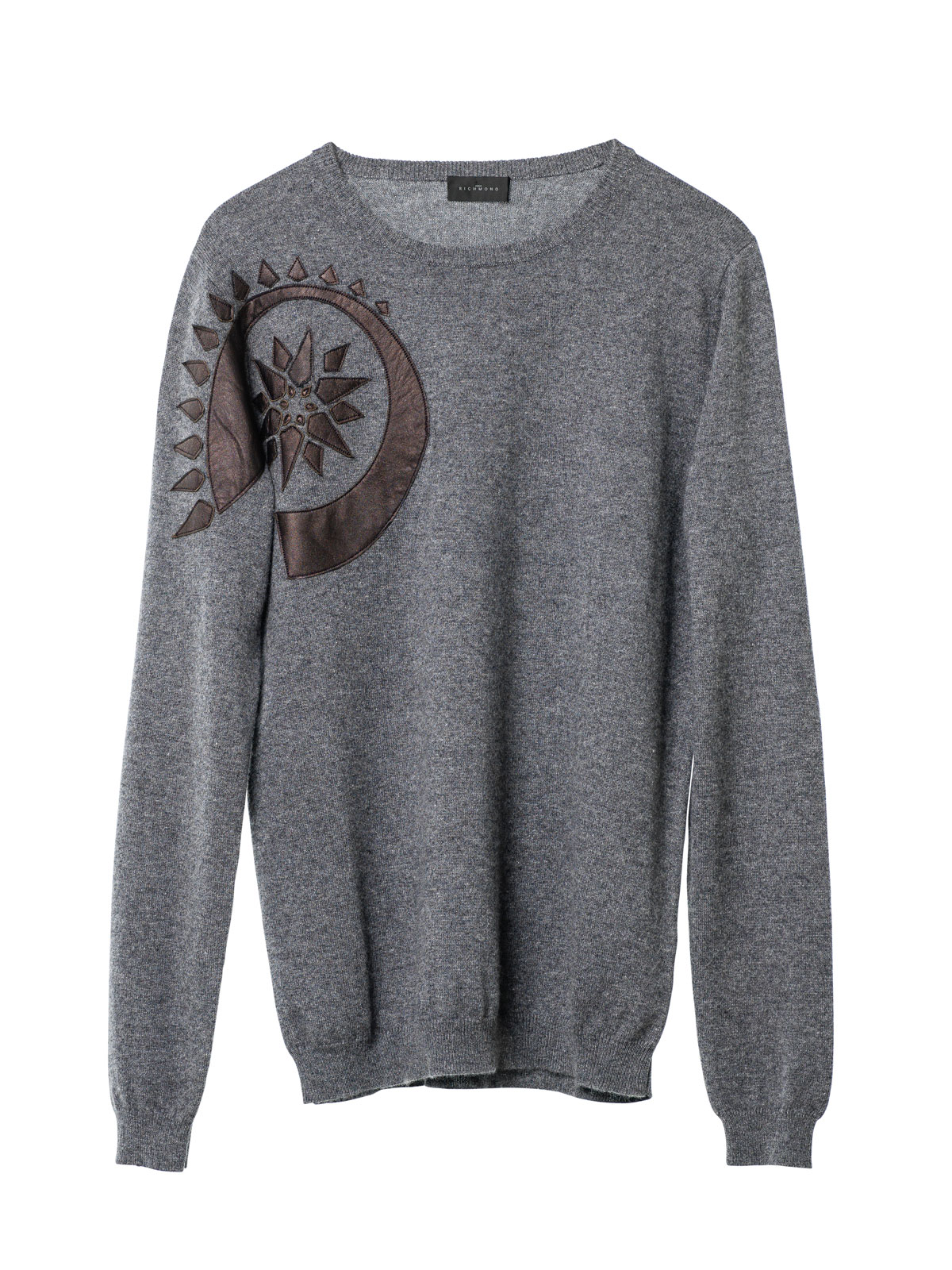 JOHN RICHMOND: crew necks - Gray jumper with leather patch