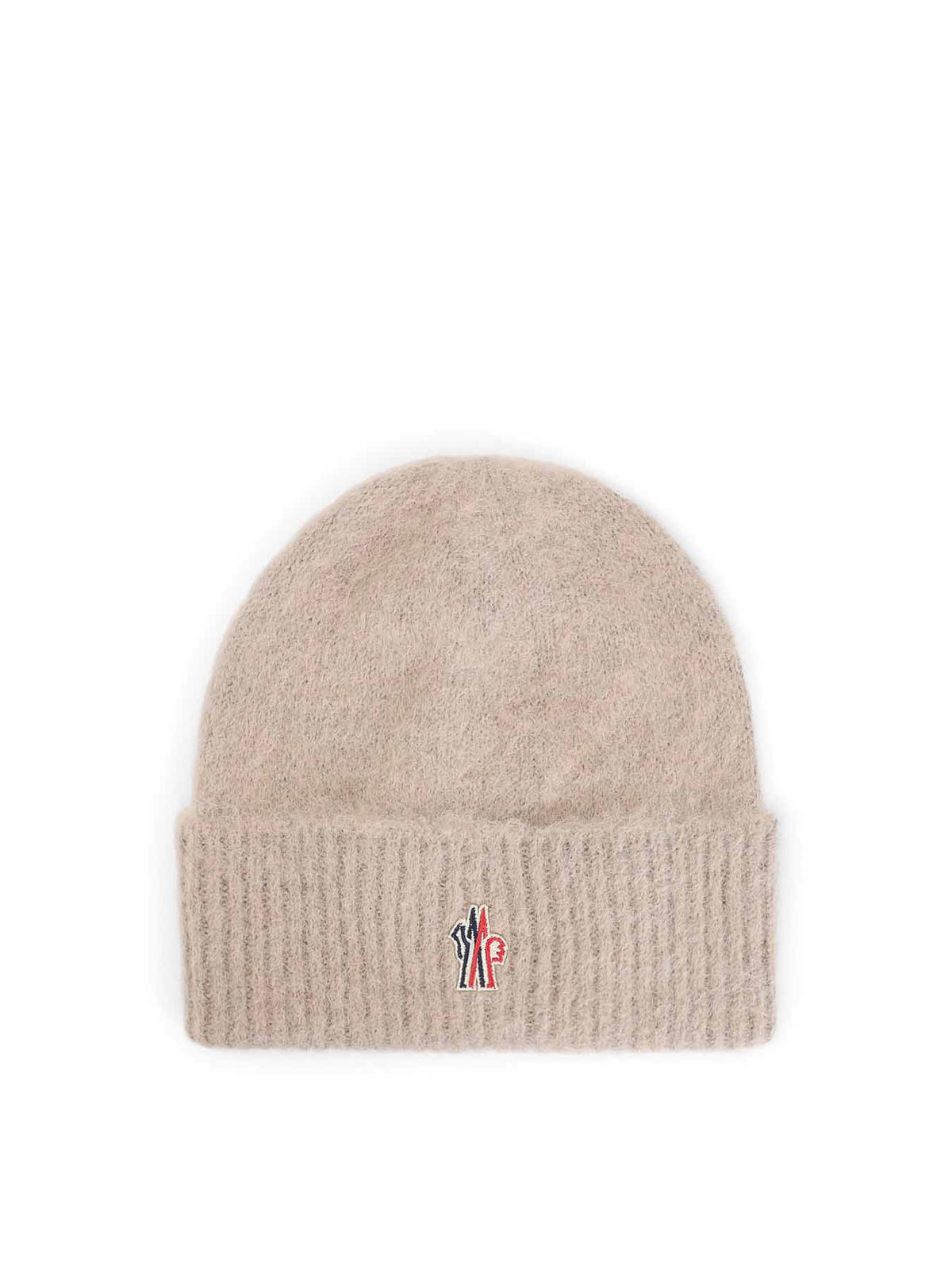Moncler grenoble khaki beige hat crafted and blend turned, up ribbed hem embroidered logo fluffy design