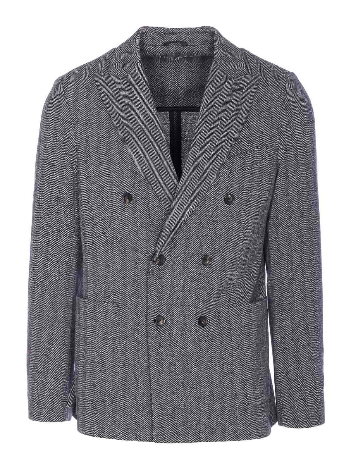 Circolo 1901 grey jacket with frontal double breasted buttons closure, long sleeves, chevron motif