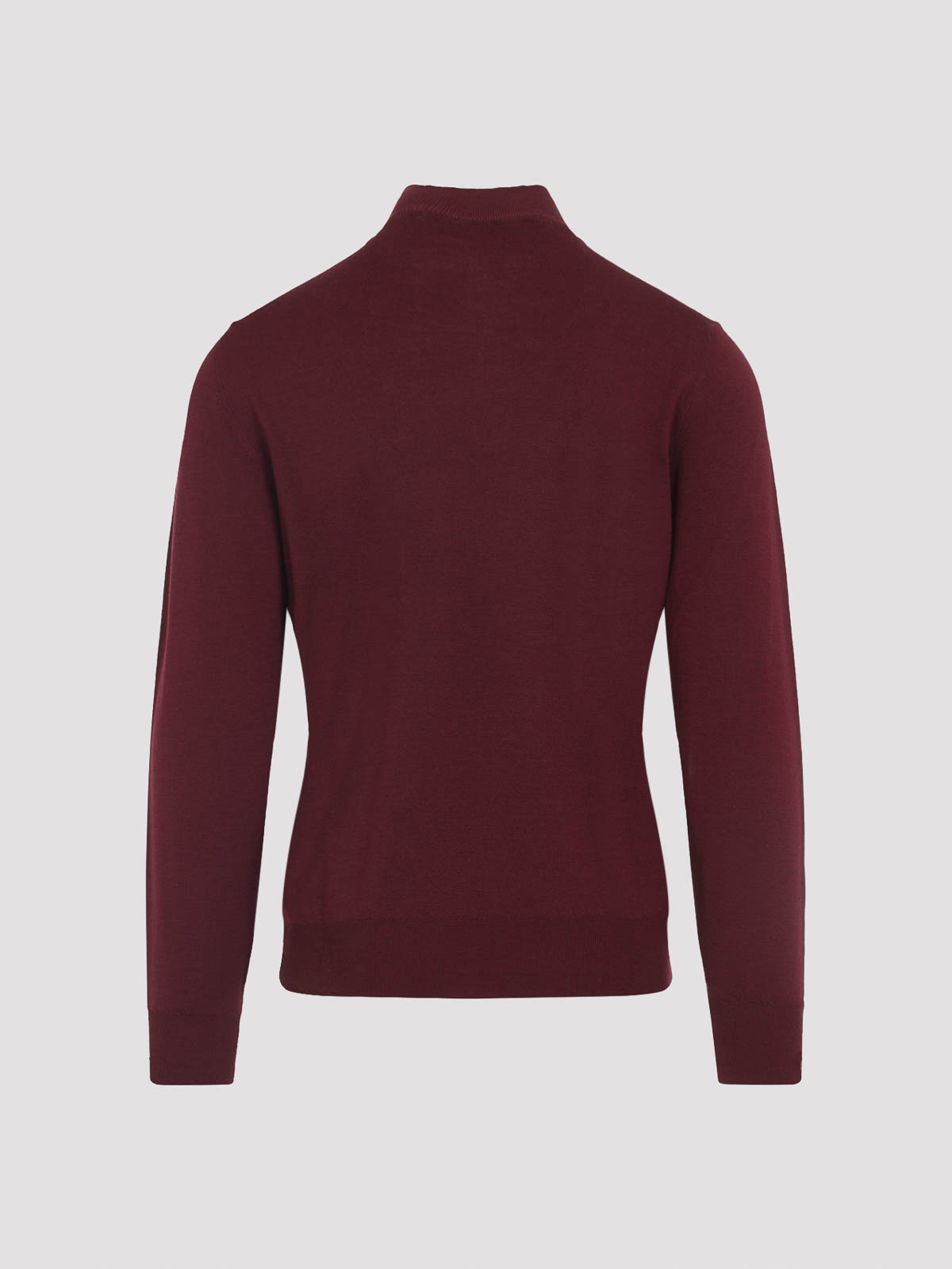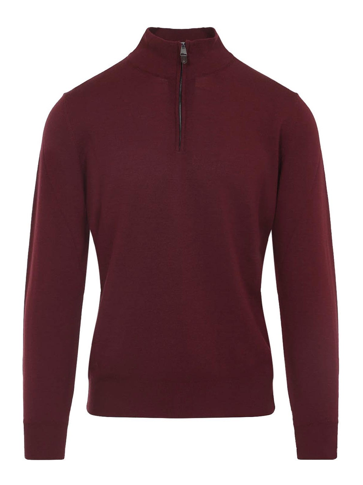 Canali burgundy red half zip high neck sweater pure burgundy red sweater stand, up collar half, zipped long sleeves ribbed cuffs and hem straight hem