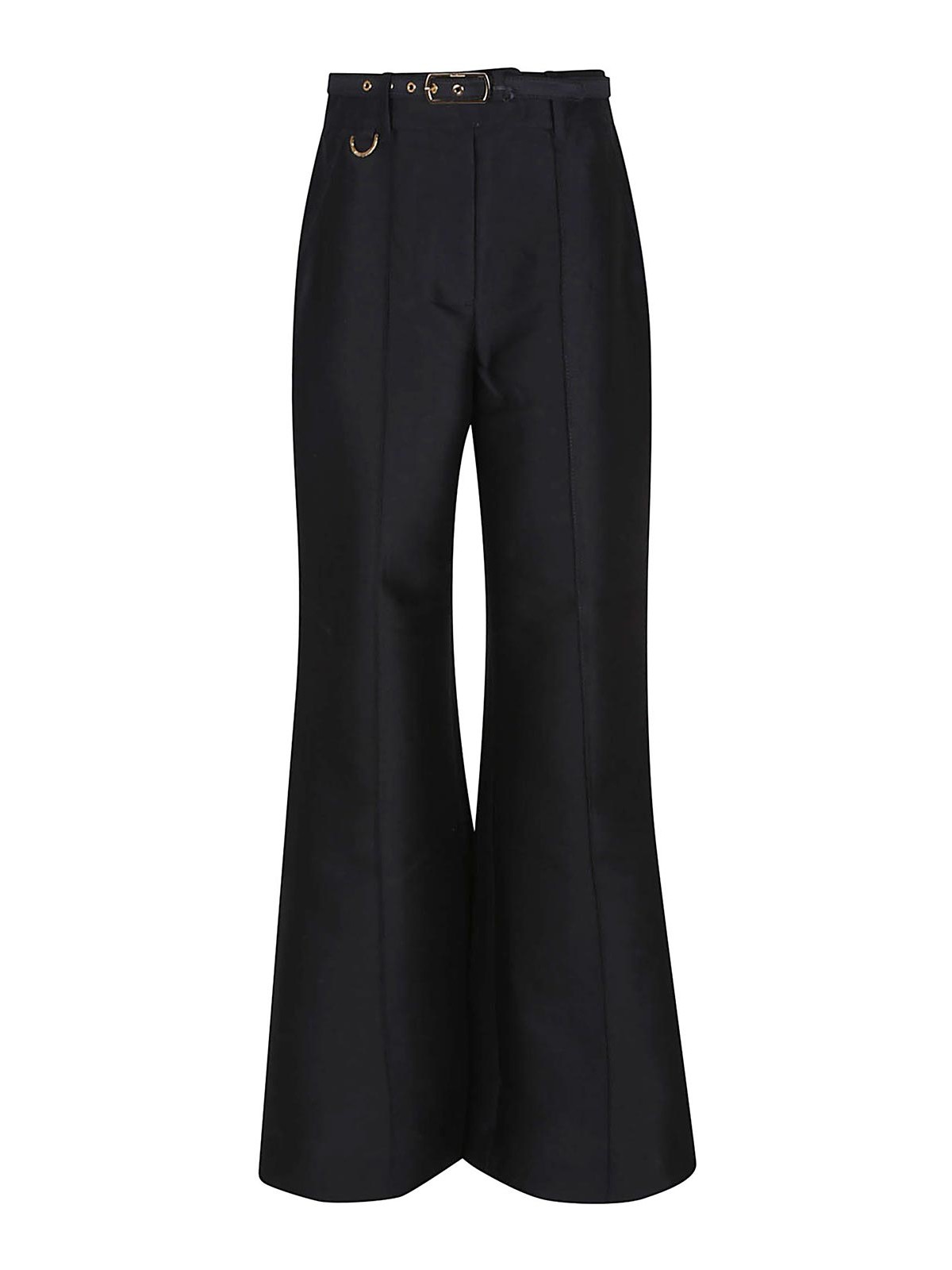 Hypnotic flare pants in a wool blend by Zimmermann, with hook-and-bar closure, center front pleats, two front side pockets and non-functional back pockets, flared silhouette. Featuring topstitching details throughout and a removable self-covered belt.