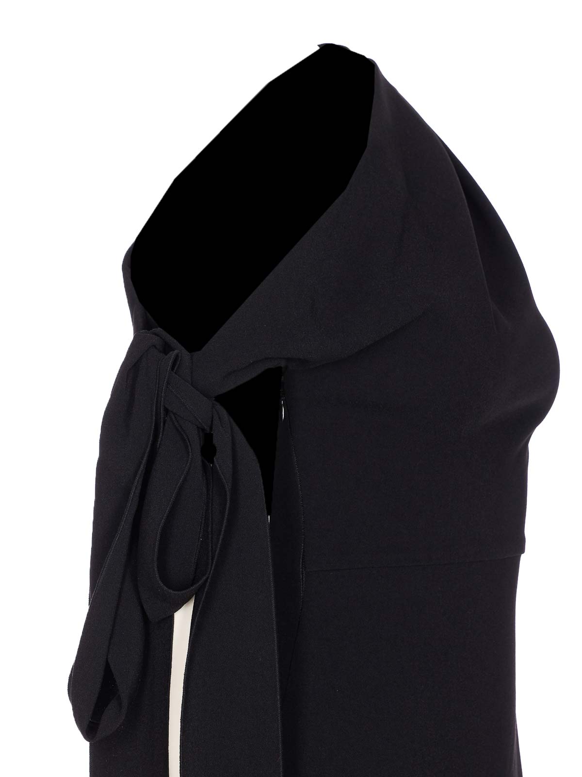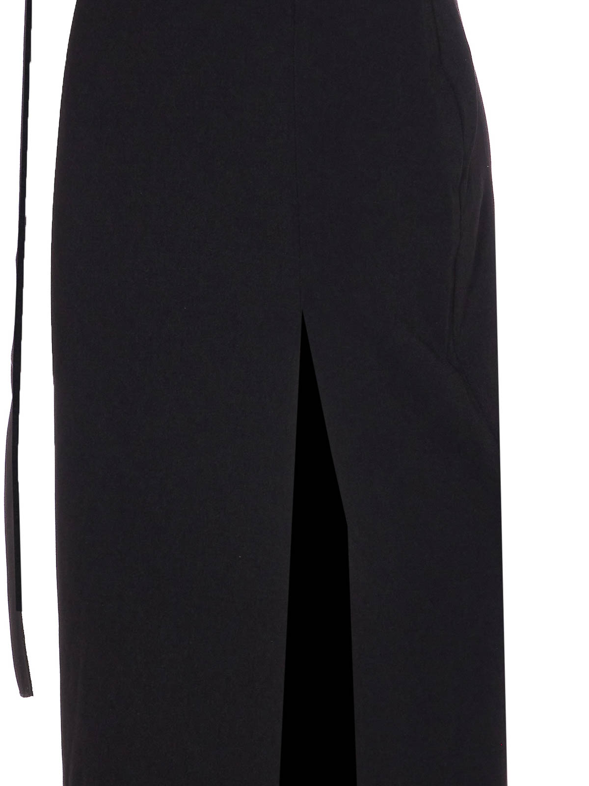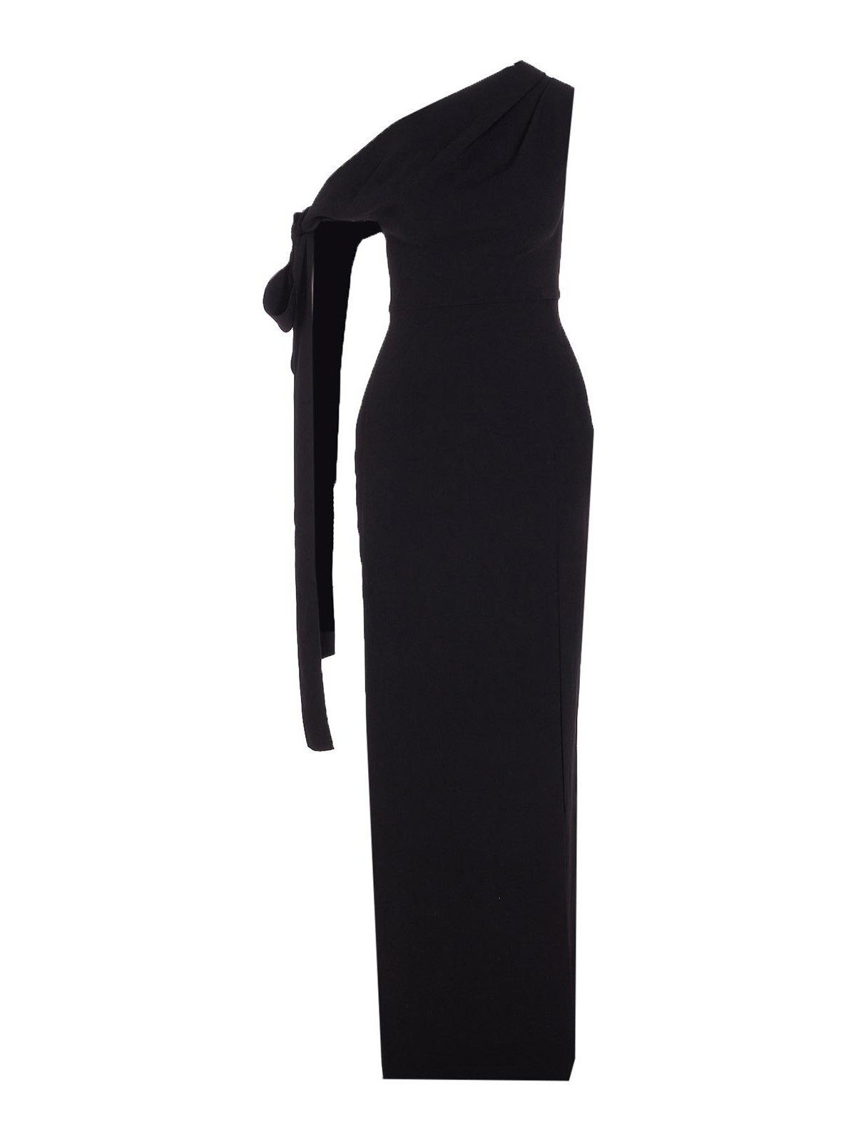 Solace london black irina maxi dress, lateral zip closure,lateral split detail, lateral bow detail, long model