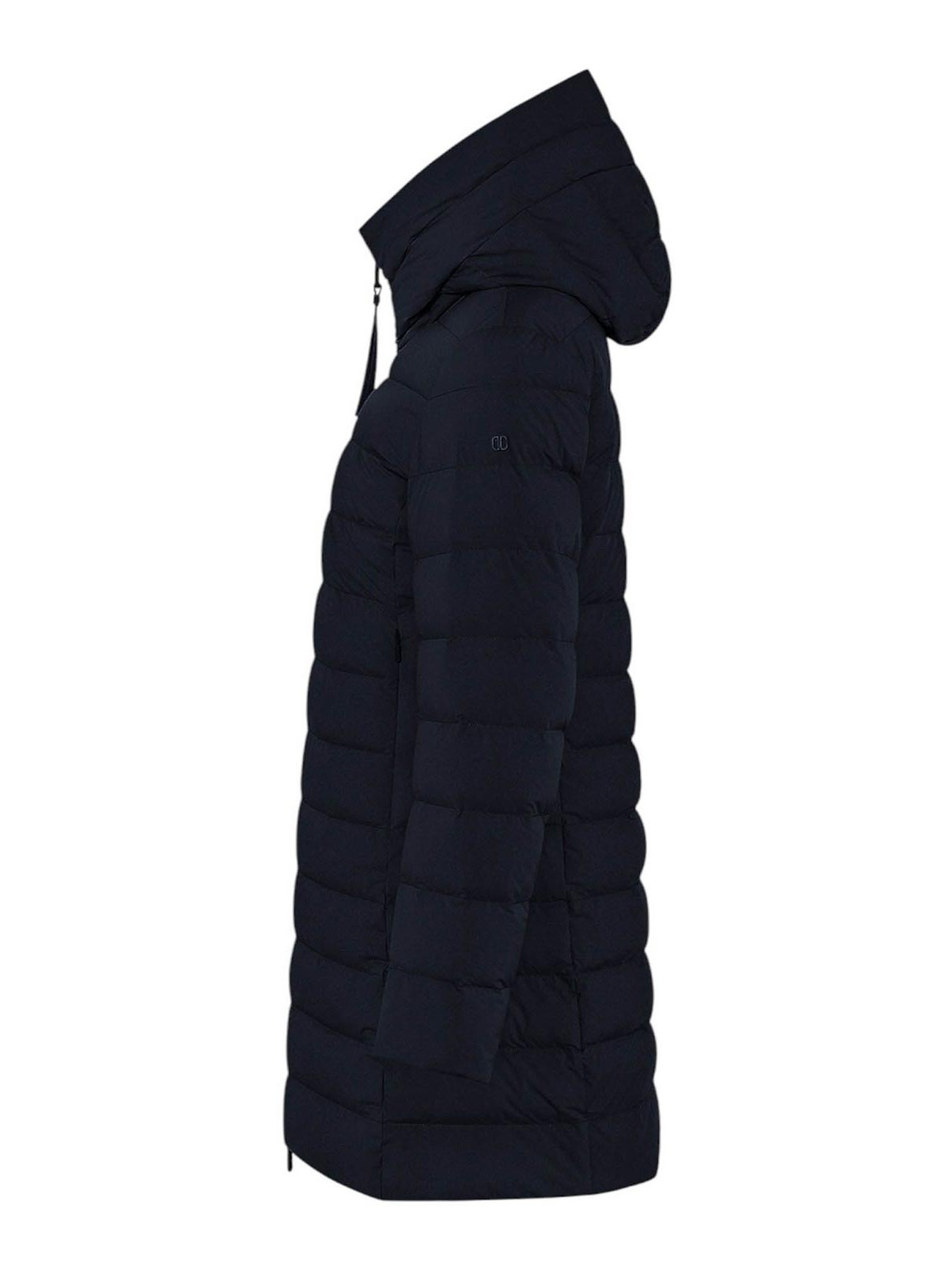Duno licosa 2.0 women's jacket in stretch technical fabric, long jacket with a minimal and modern design, ideal for facing the cold season with style and elegance. the horizontal quilting enhances the silhouette, while the adjustable hood and high collar guarantee protection and comfort on the coldest days.
