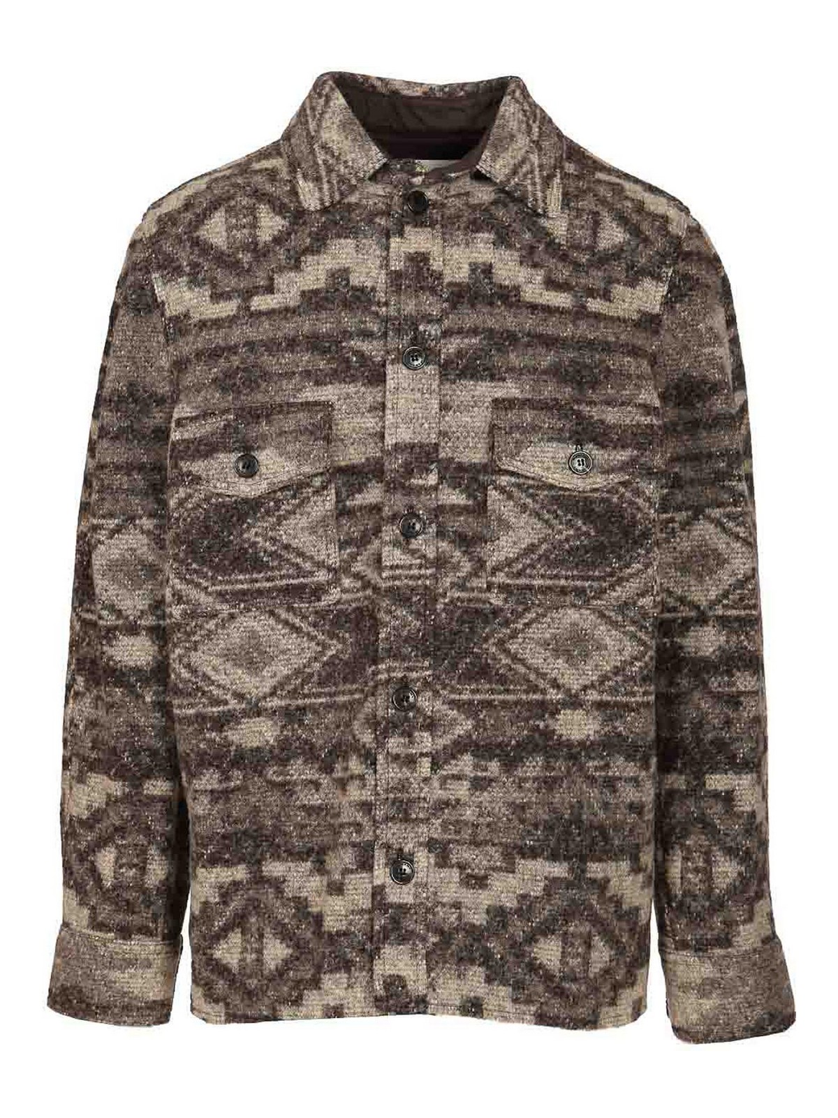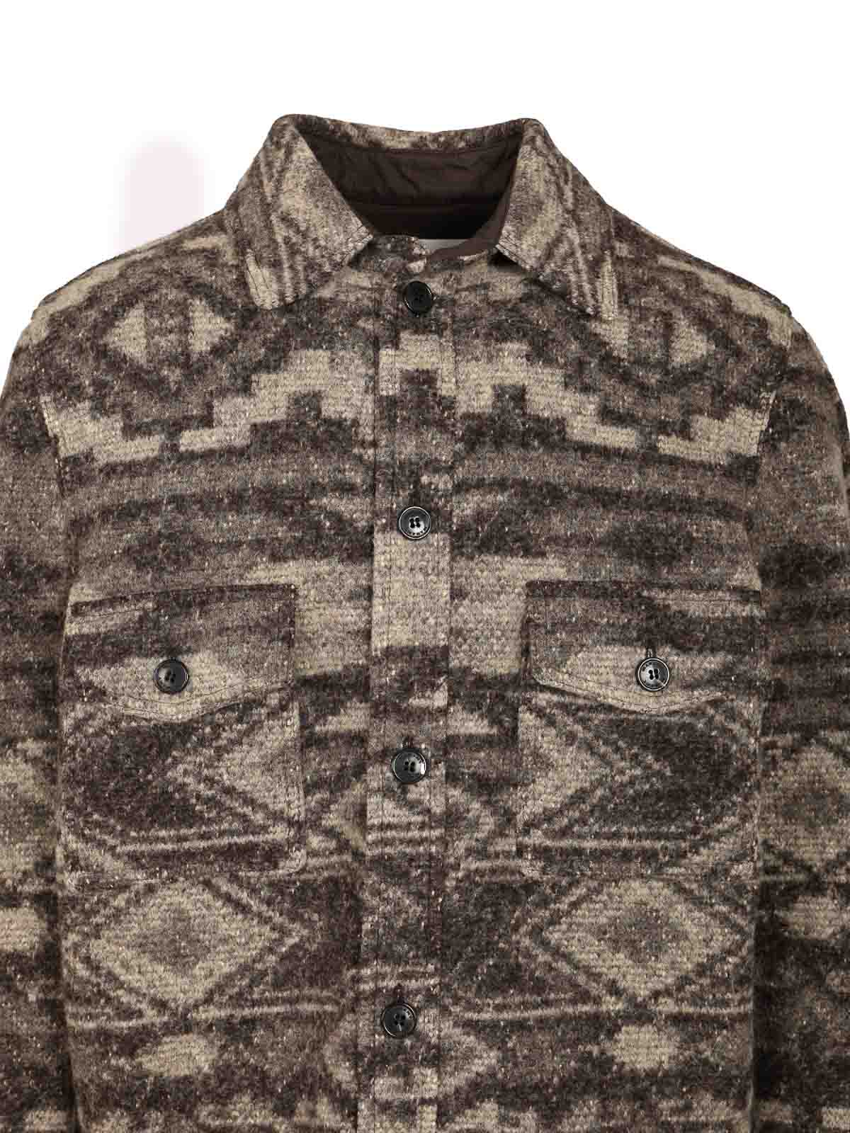 Marant's graphic blend kervon jacket features a button a shirt collar patch pockets with buttoned flaps long sleeves straight cuffs turn, ups and bias binding at the inside